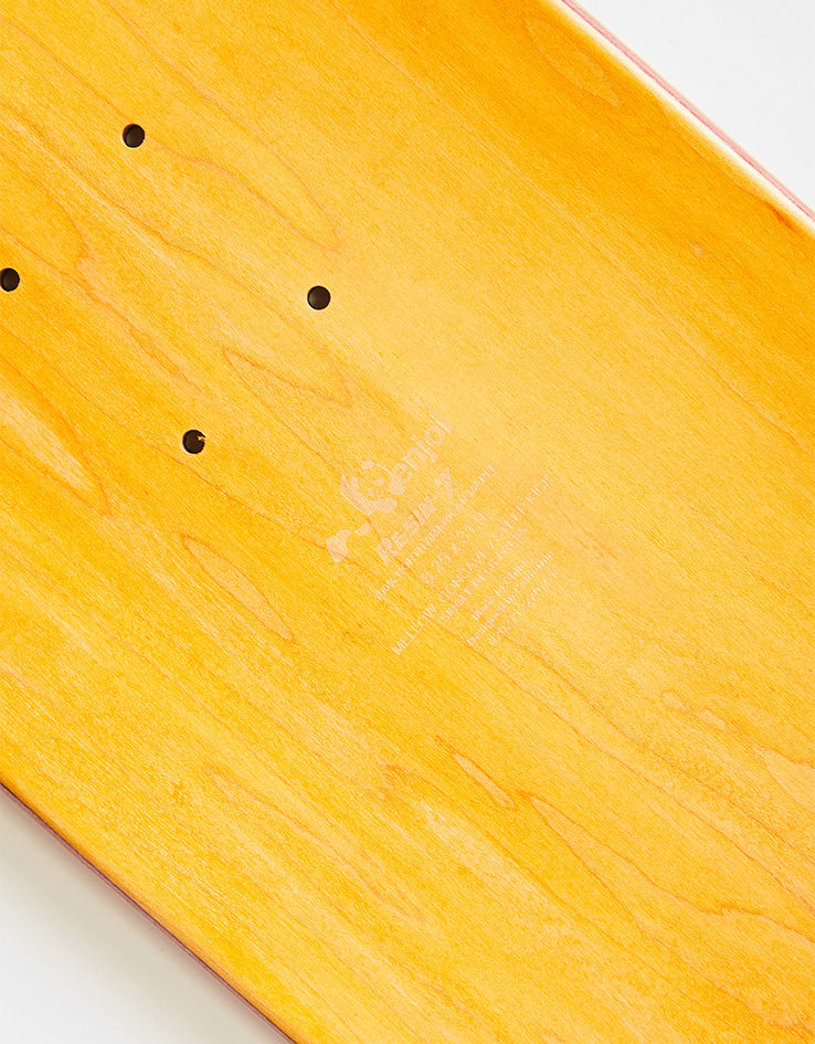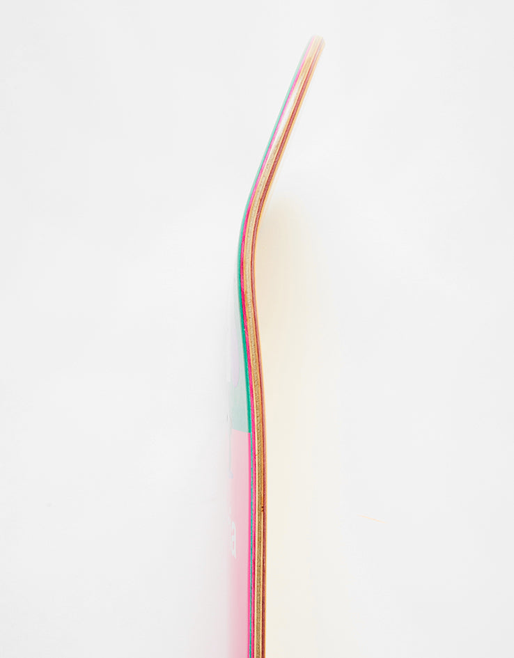 Samaria Brevard's High Waters pro model deck for Enjoi Skateboards features an unusual graphic layout, moving the primary focal point to the nose of the board which sports cartoon artwork against a wood stain background for a multi-dimensional effect. The rest of the board has a simple block colour, and is constructed using Resin-7 for more strength and a lighter makeup than traditional 7-ply decks.