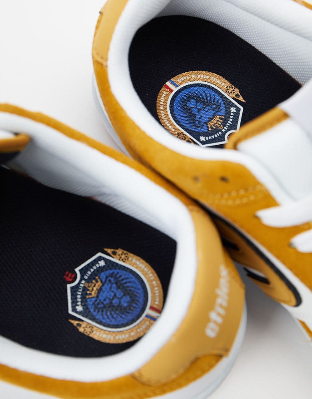 The Aurelien Giraud Pro shoe for Etnies features an STI Performance insole, hidden reinforcement in high wear areas, elastic tongue straps for superior fit and a solid two piece toe cap to help keep the shoes shape for longer. This is sat on top on a high quality cup sole for grip and board feel.