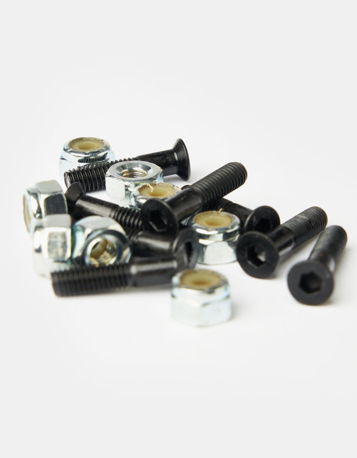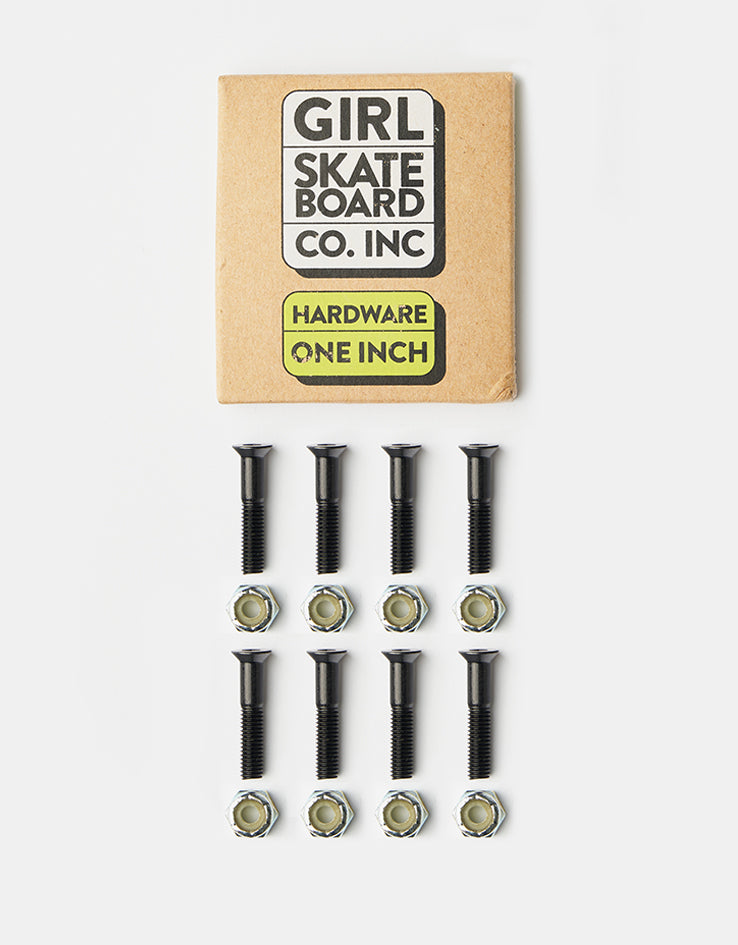 1" Allen Bolts from everyone's favourite Girl Skateboards. Perfect for a setup with no risers - 8 black bolts with silver allen heads in a neat little package. No fuss and excellent value, from one of the top skateboard companies around.