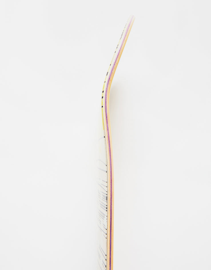 The Girl Bennett Suzuki Method G053 Skateboard Deck is a pro model for Niels Bennett coming in at 8.5" wide. The deck features a piece of artwork by Misato Suzuki which features a bunch of lines and triangles on a white, sand and yellow background. Niels' name and Girl branding sit embossed on the tail.