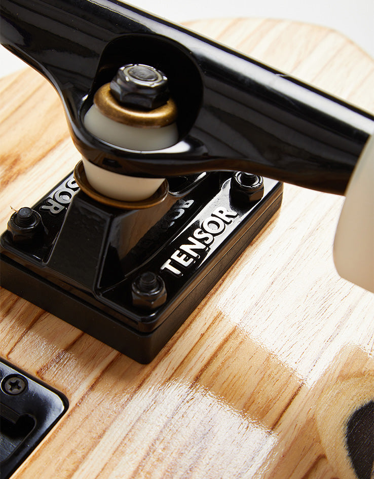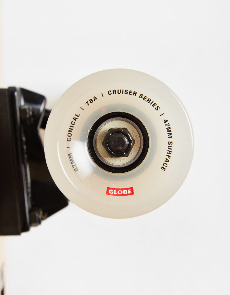 The Globe Big Blazer Olivewood Cruiser Skateboard is a medium length diamond-tail cruiser with soft conical wheels that comes fully set up and ready to hit the streets. Coming in at 9.125" wide, the deck features a simple split design and comes with wheel wells. It comes equipped with 4.25" Tensor alloy trucks, 62mm 78a Conical Cruiser Wheels, Abec 7 bearings and clear broadcast grip.