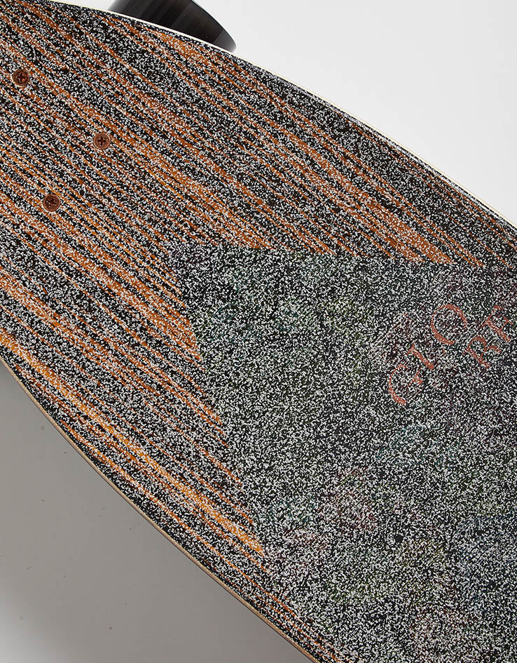 The Globe Byron Bay Nightshade Kicktail Longboard is a surf inspired squash tail longboard which is fully set up and ready to hit the streets. Coming in at 9.5" wide, the deck features an ebony wood design with a fabric inlay. It comes equipped with 150mm Slant reverse kingpin trucks, 70mm 78a Conical Cruiser wheels, Abec 7 bearings and clear broadcast grip.