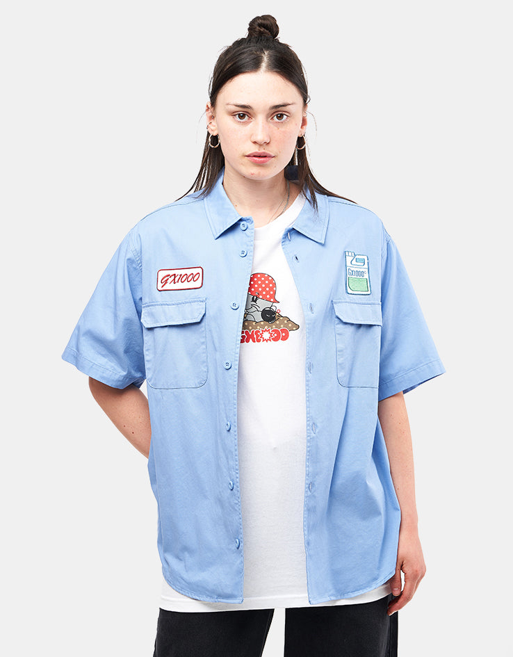 Upgrade your wardrobe with pieces from everyone's favourite San Francisco skate brand, the GX1000 Fertilizer S/S Button Down Shirt in Light Blue. Composed of 100% cotton, styled in a relaxed fit with embroidered graphics on the front chest and a button up closure.