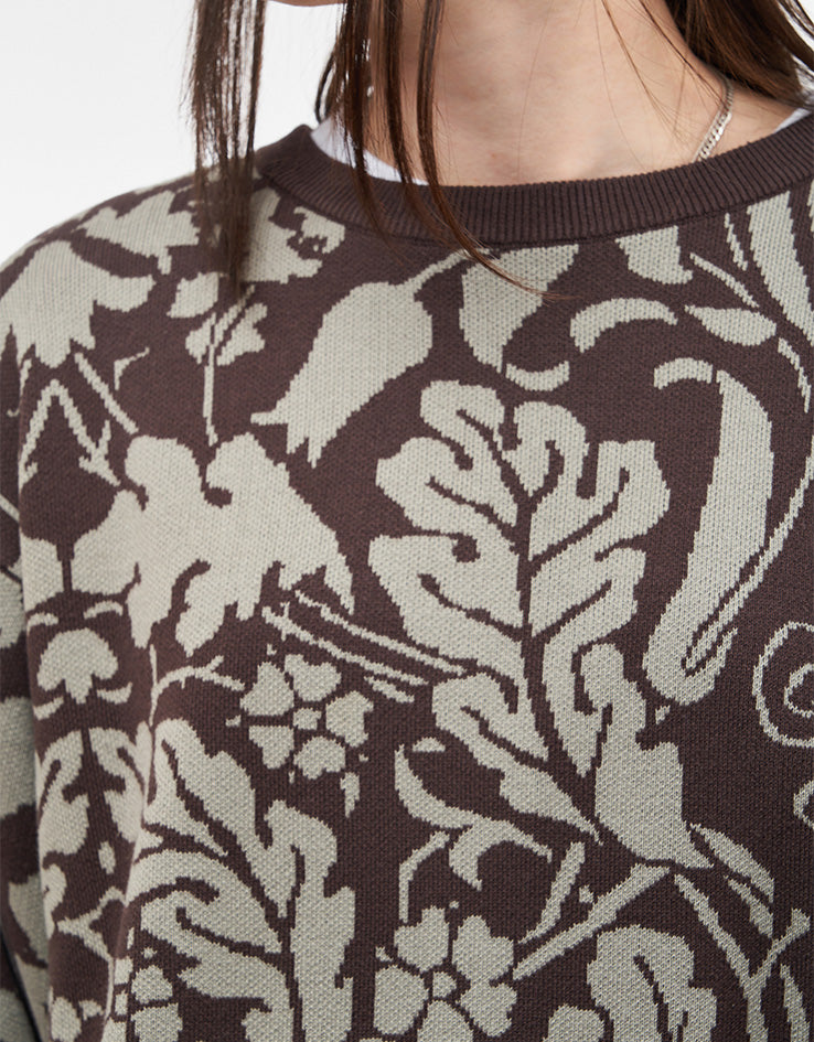 GX1000 Jacquard Knit Floral Sweater - Brown/Cream