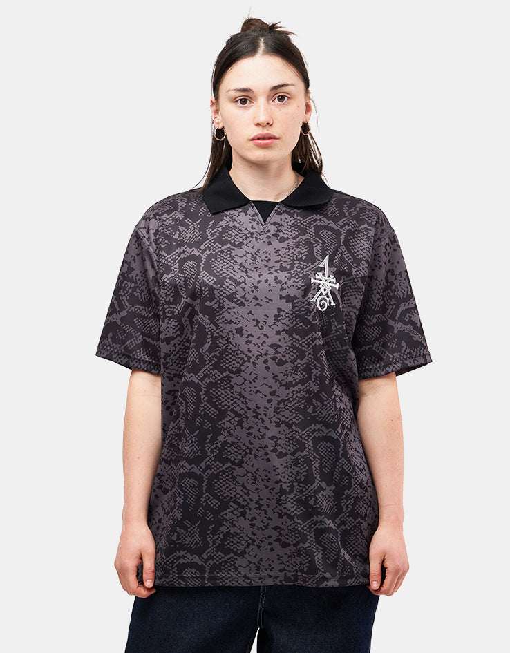 Upgrade your wardrobe with pieces from everyone's favourite San Francisco skate brand, the GX1000 Soccer Jersey in Snakeskin Print. Composed of a polyester blend, styled in a relaxed fit with embroidered graphics on the front chest.