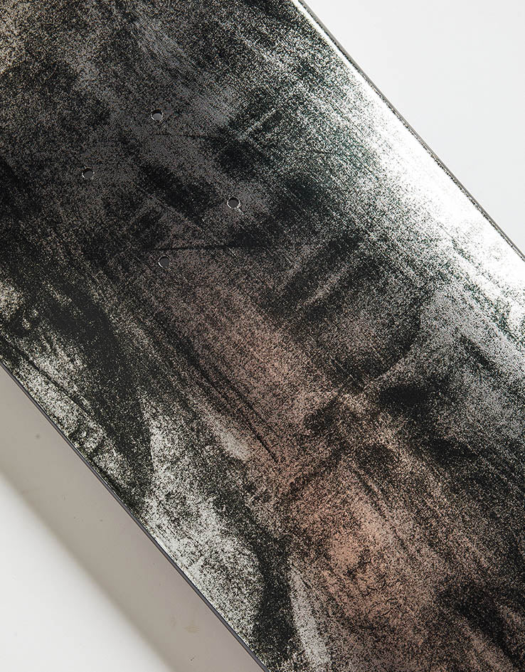 The Hockey Rodrigues Mehtoxy S1 Skateboard Deck comes in at 8.5" wide and features a charcoal style artwork of hidden faces. A digital print over silver foil with black dip.