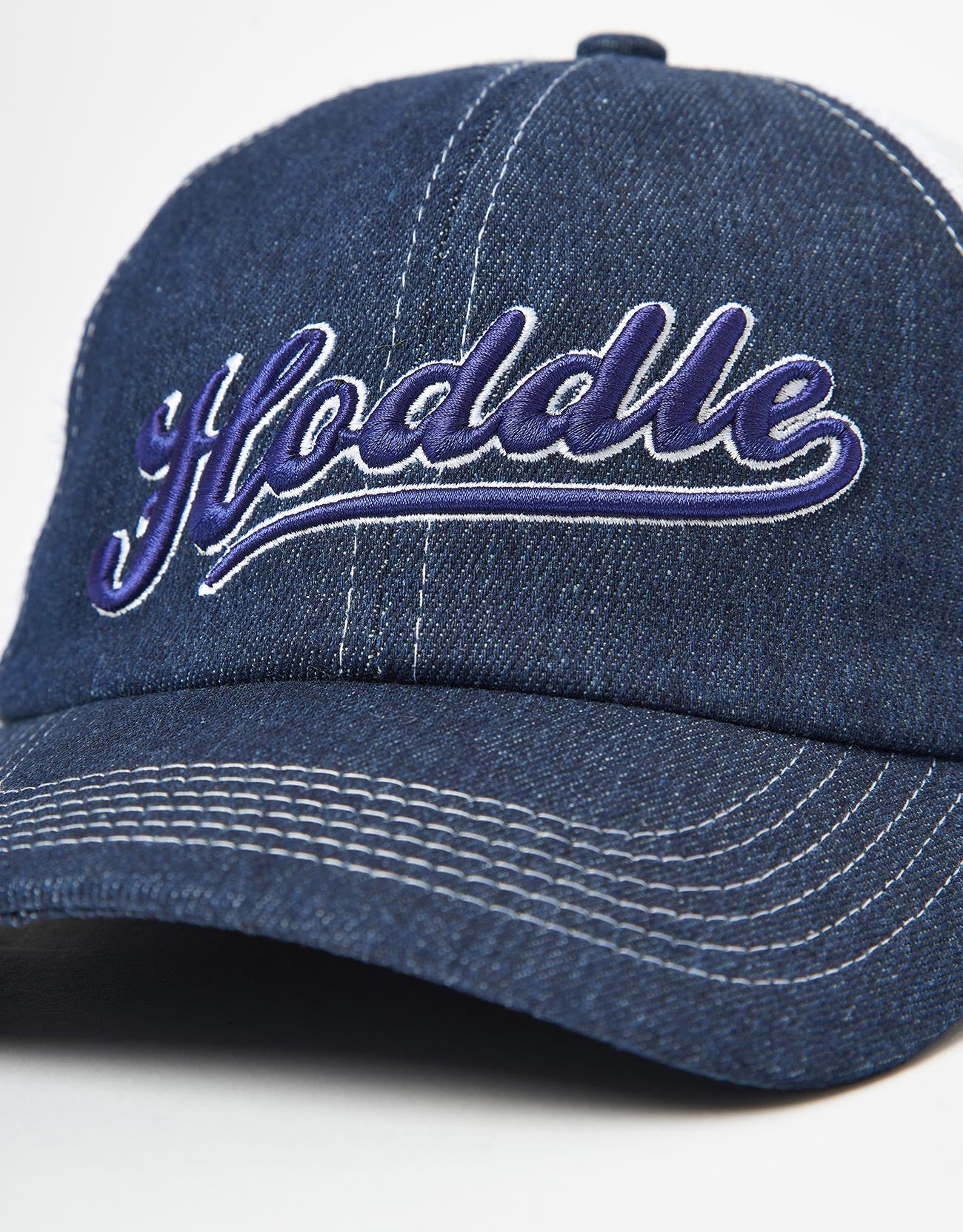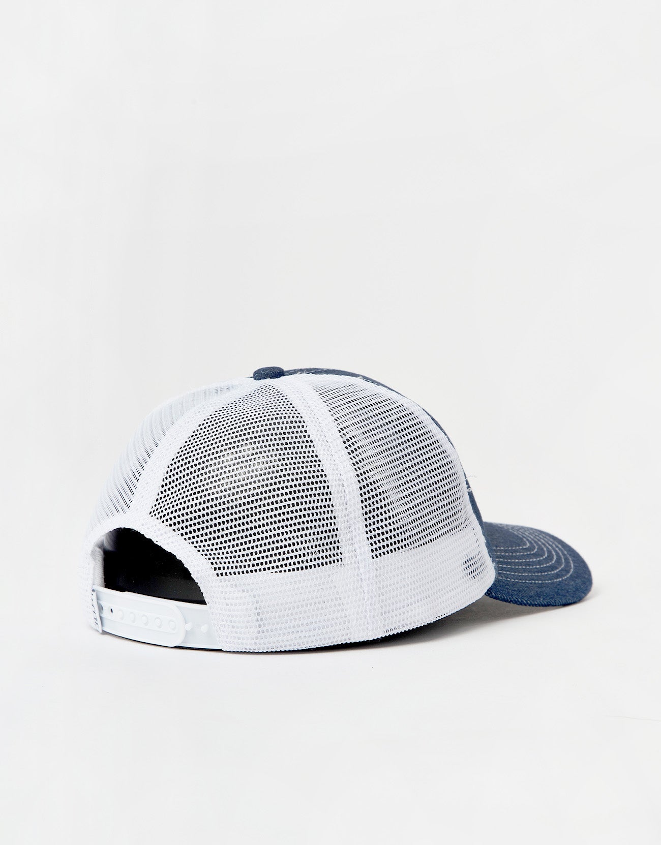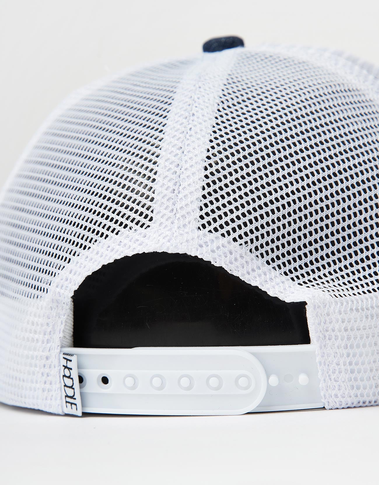 Hoddle Intarsia Script Trucker Cap - Denim/White