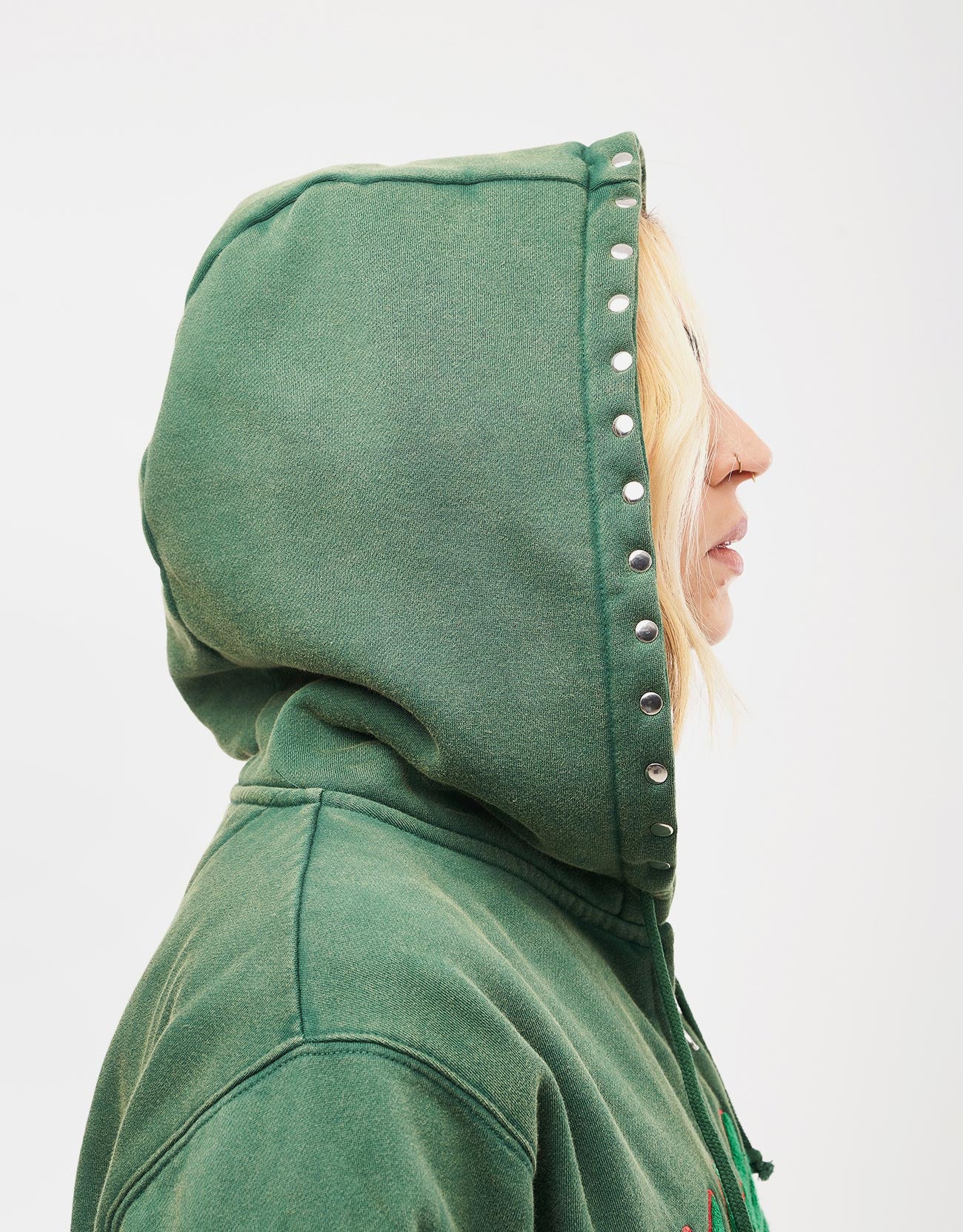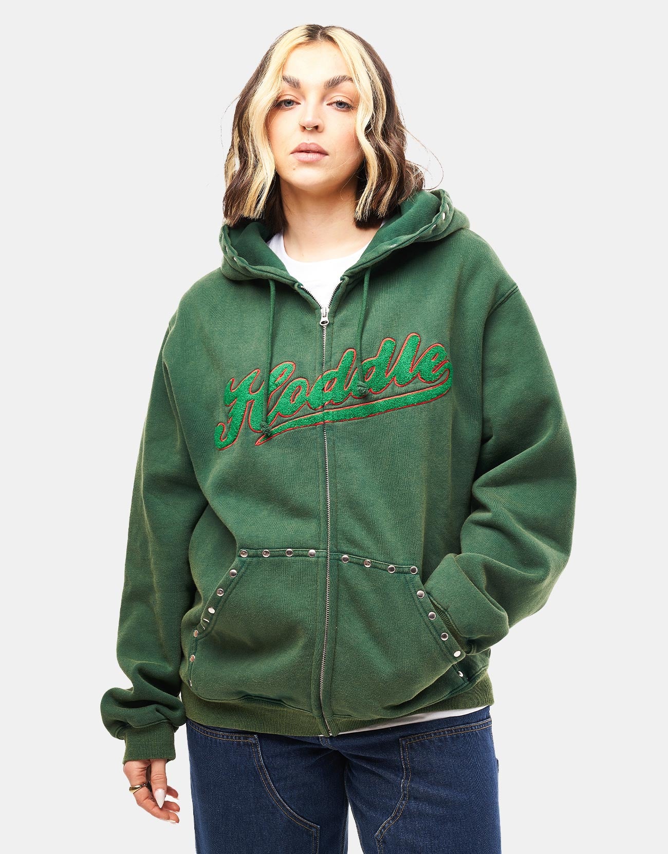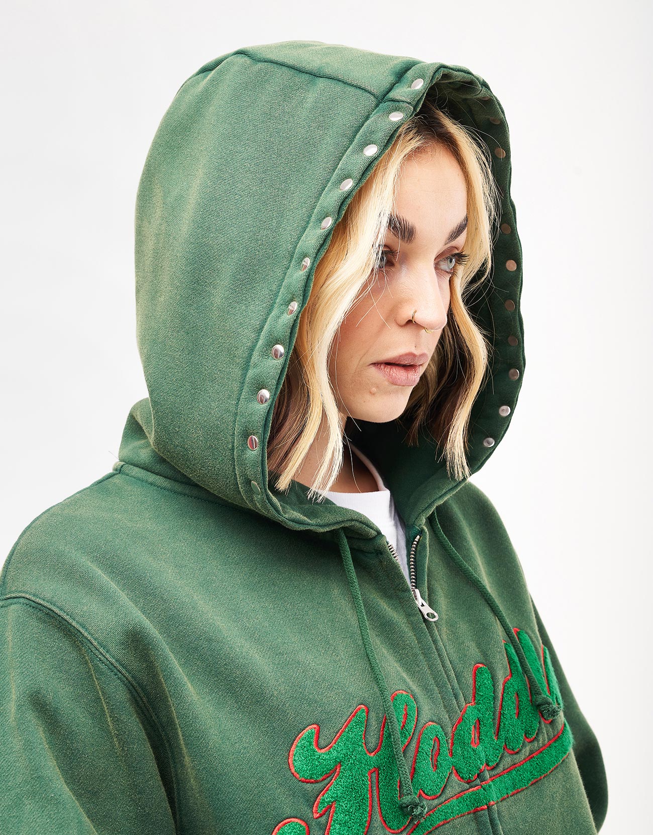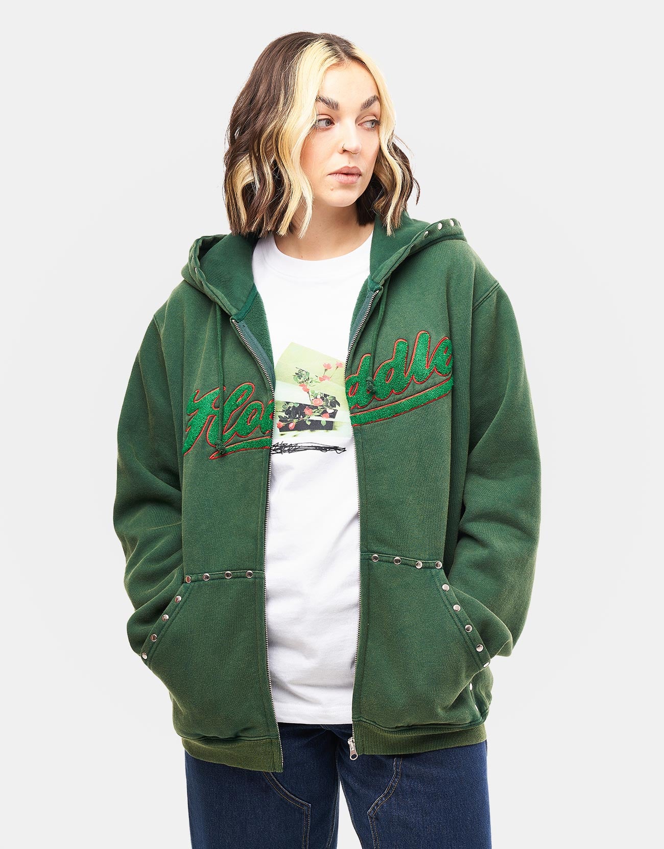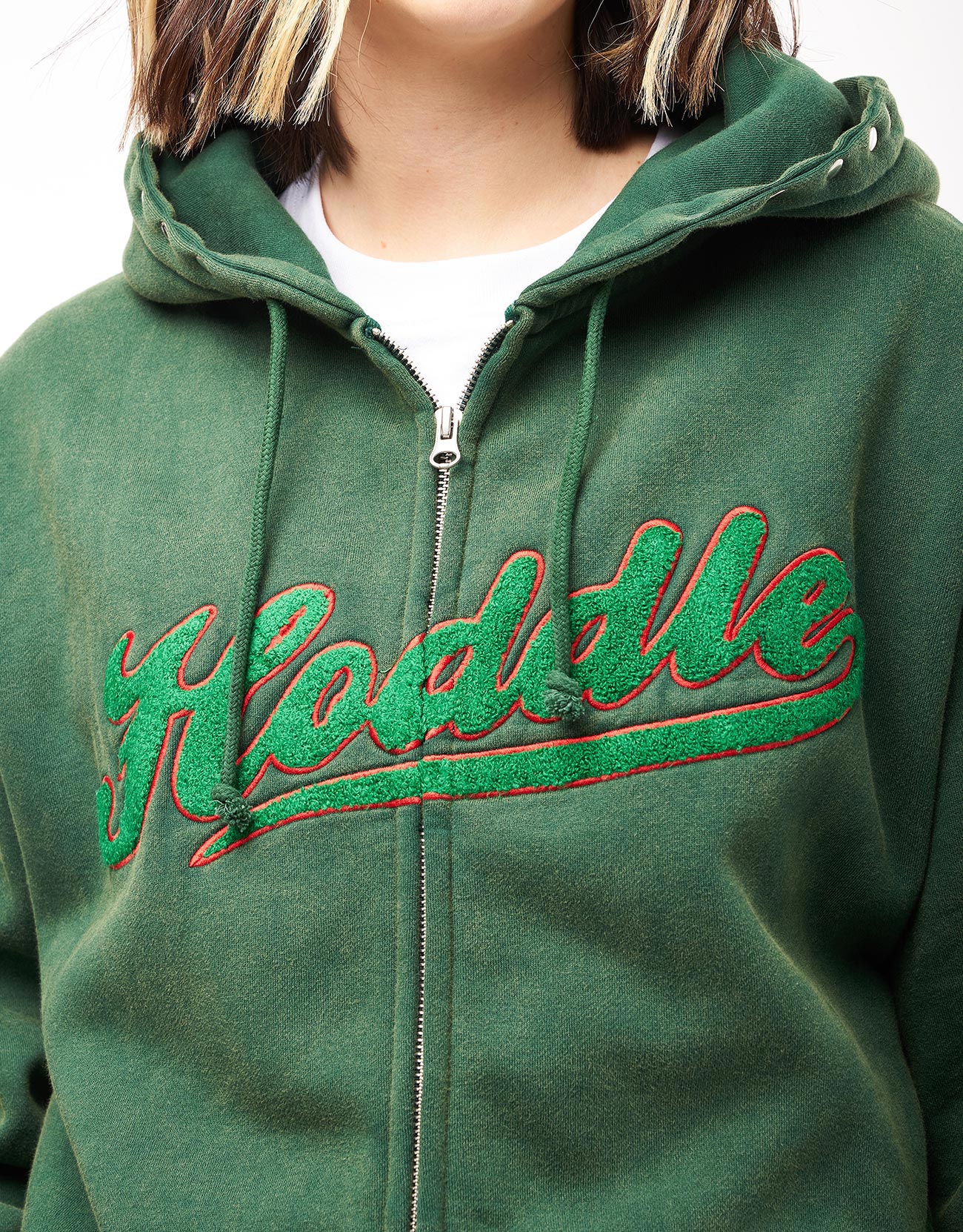 Hoddle Intarsia Script Zip Hoodie - Washed Green