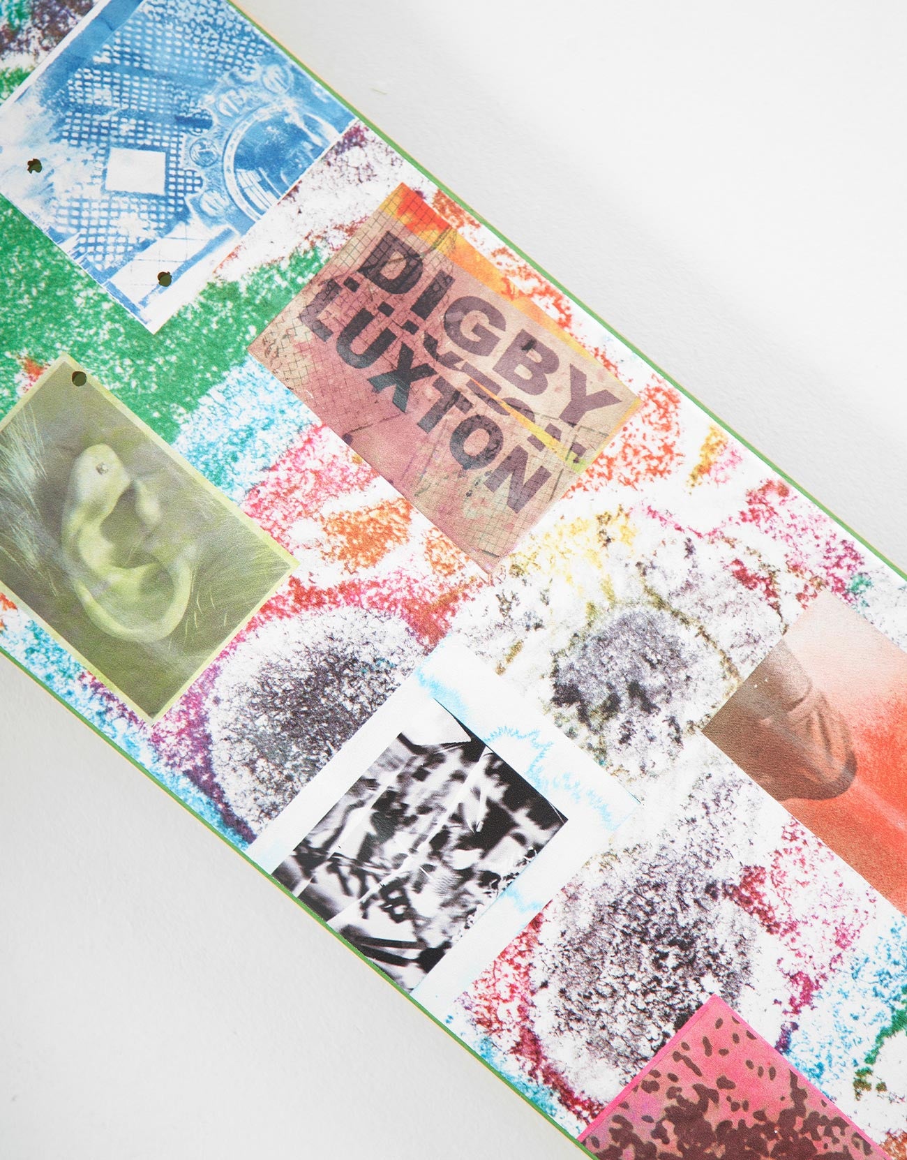 The Hoddle Luxton Realist Skateboard Deck is a pro model for Digby Luxton coming in at 8" wide and features artwork from Caeylen Fenelon-Norris. The deck is an abstract collection of prints, scans and squiggles.