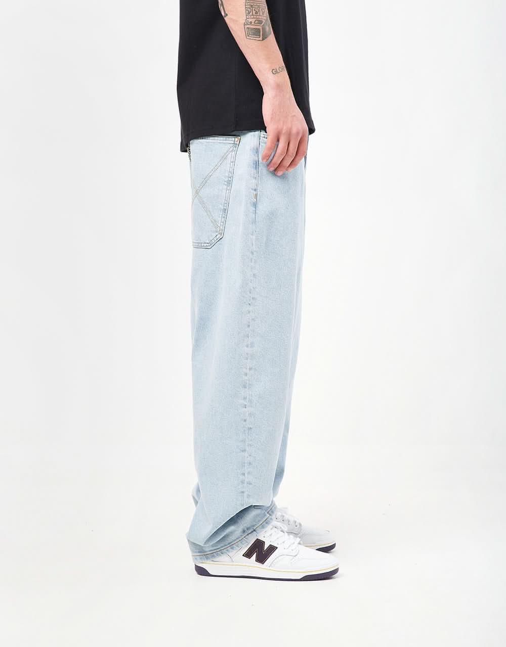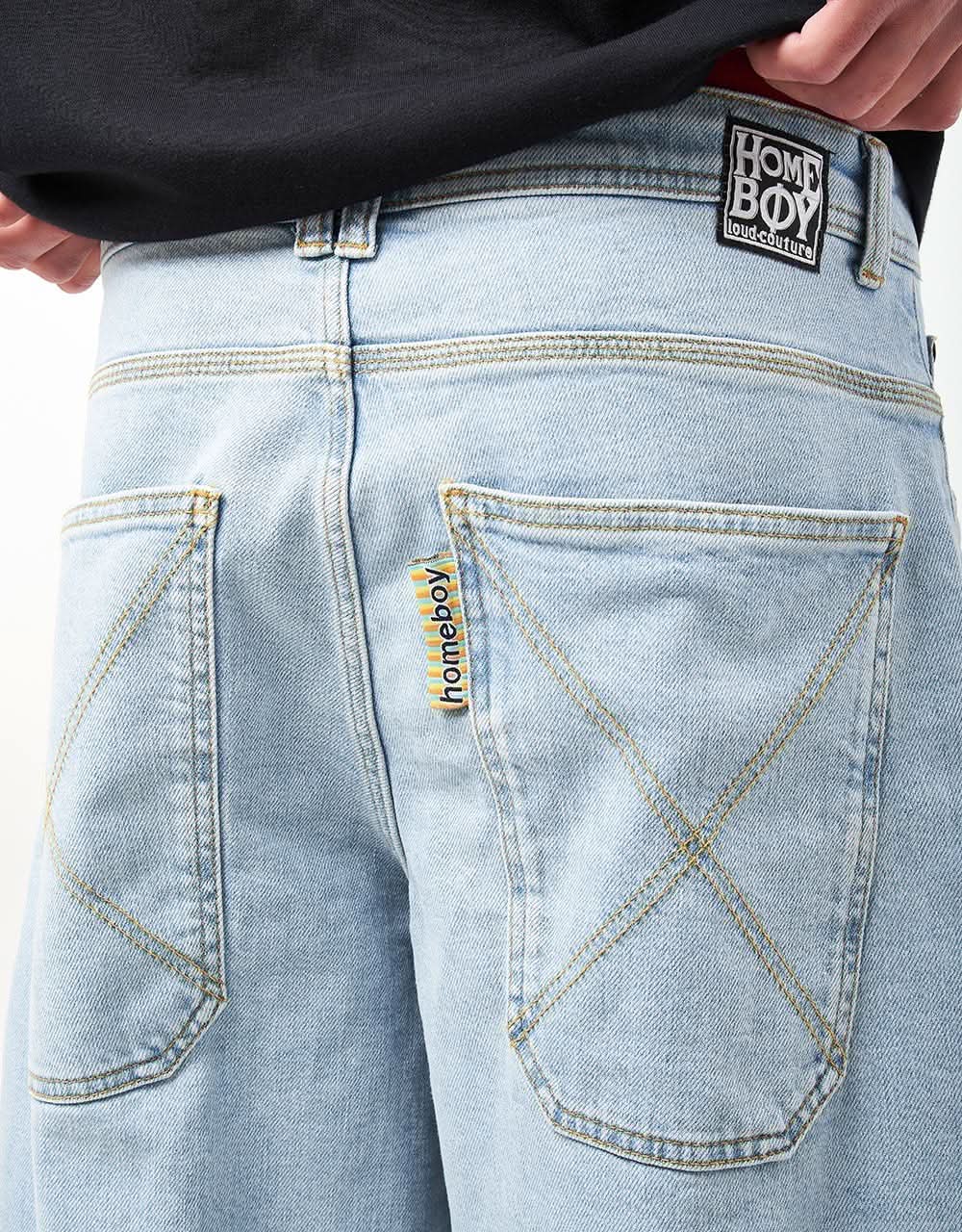 '90s streetwear trendsetters Homeboy reintroduce their X-Tra Monster Denim, a favourite of hip-hop and skating's finest. This classic denim jean is crafted using cotton and a little hit of elastane for a comfortable stretch, and has a wider thigh area with a slight taper from the knee through to the leg opening so they sit perfectly on your shoes. They feature the classic detailing that made them so popular in the nineties, including a rainbow logo tag, woven back patch and cool embroidery throughout.