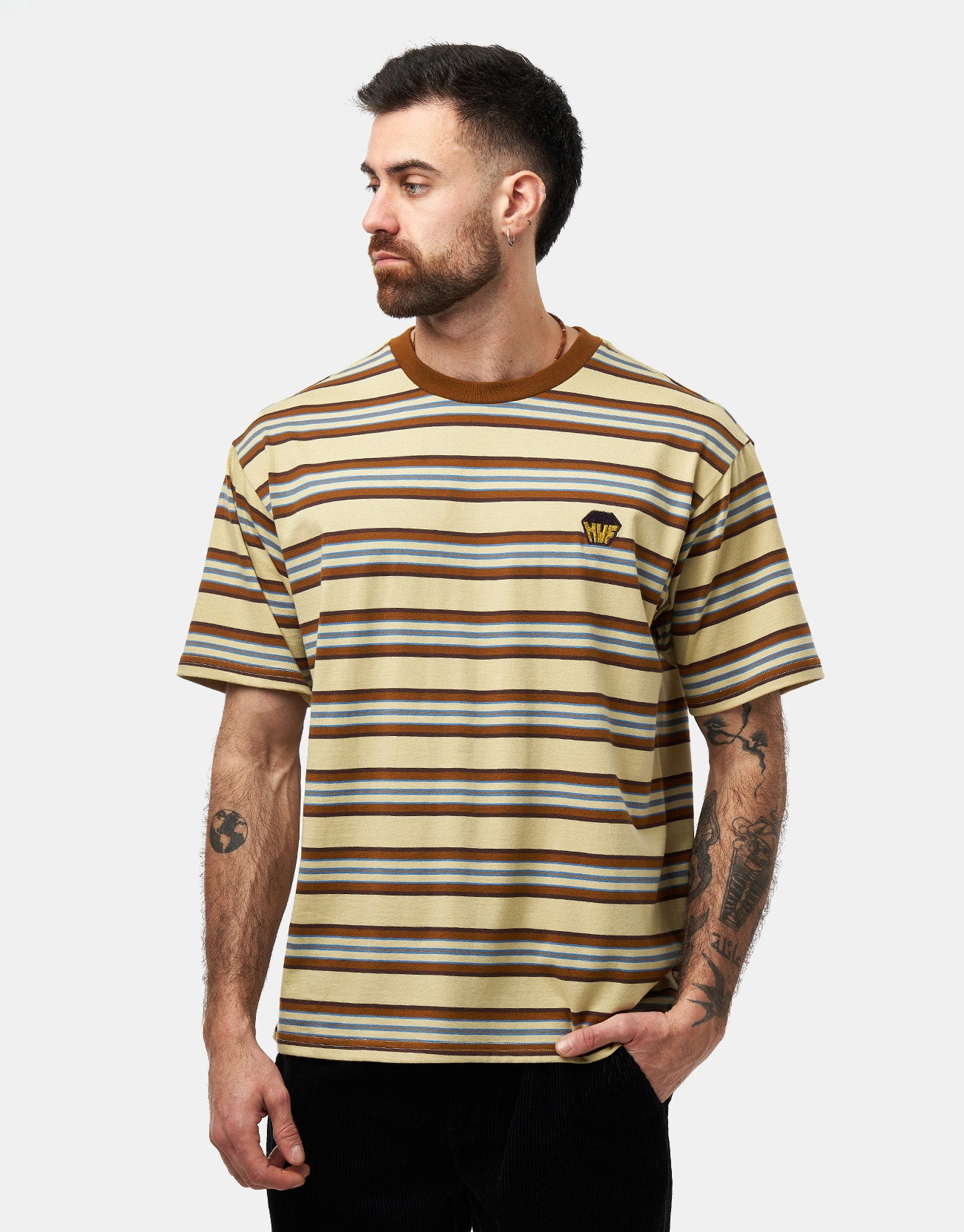 Upgrade your wardrobe with the HUF Big Block Stripe Boxy T-Shirt in Clay, an essential addition to everyday outfits. Composed of 100% cotton, styled in a relaxed fit with an embroidered graphic on the front left chest.