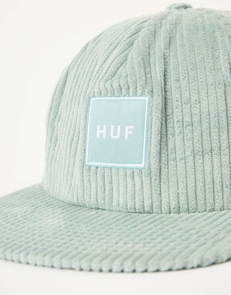 Add a refreshing touch to your streetwear ensemble with the HUF Box Logo Cord Strapback Cap in Mint. This cap features a six-panel construction and a curved brim, providing a comfortable fit and a sleek, modern look. The mint color adds a pop of cool and vibrant energy to your outfit, while the corduroy material gives it a unique and textured appearance. The embroidered HUF box logo on the front adds a touch of authenticity and showcases your love for the brand. With an adjustable strapback closure, this cap ensures a personalized and secure fit. Whether you're hitting the skatepark, hanging out with friends, or simply running errands, the HUF Box Logo Cord Strapback Cap in Mint is a stylish accessory that adds a dose of urban flair to any outfit.
