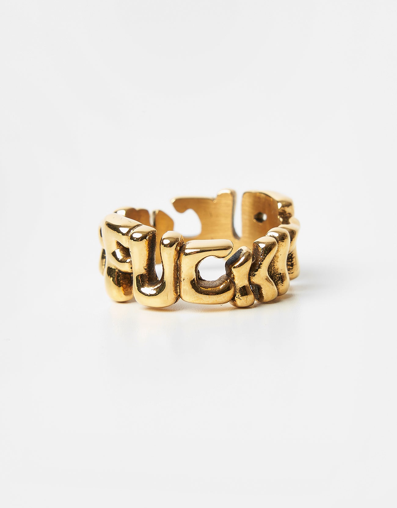 The HUF Fuck It Warped Ring in Gold features a unique, twisted design that embodies a bold, carefree attitude. Crafted from high-quality materials, this statement piece reflects the brand's edgy aesthetic and commitment to streetwear culture. Its eye-catching gold finish adds a touch of luxury, making it perfect for layering or wearing alone. Ideal for those who embrace individuality and want to make a striking impression.