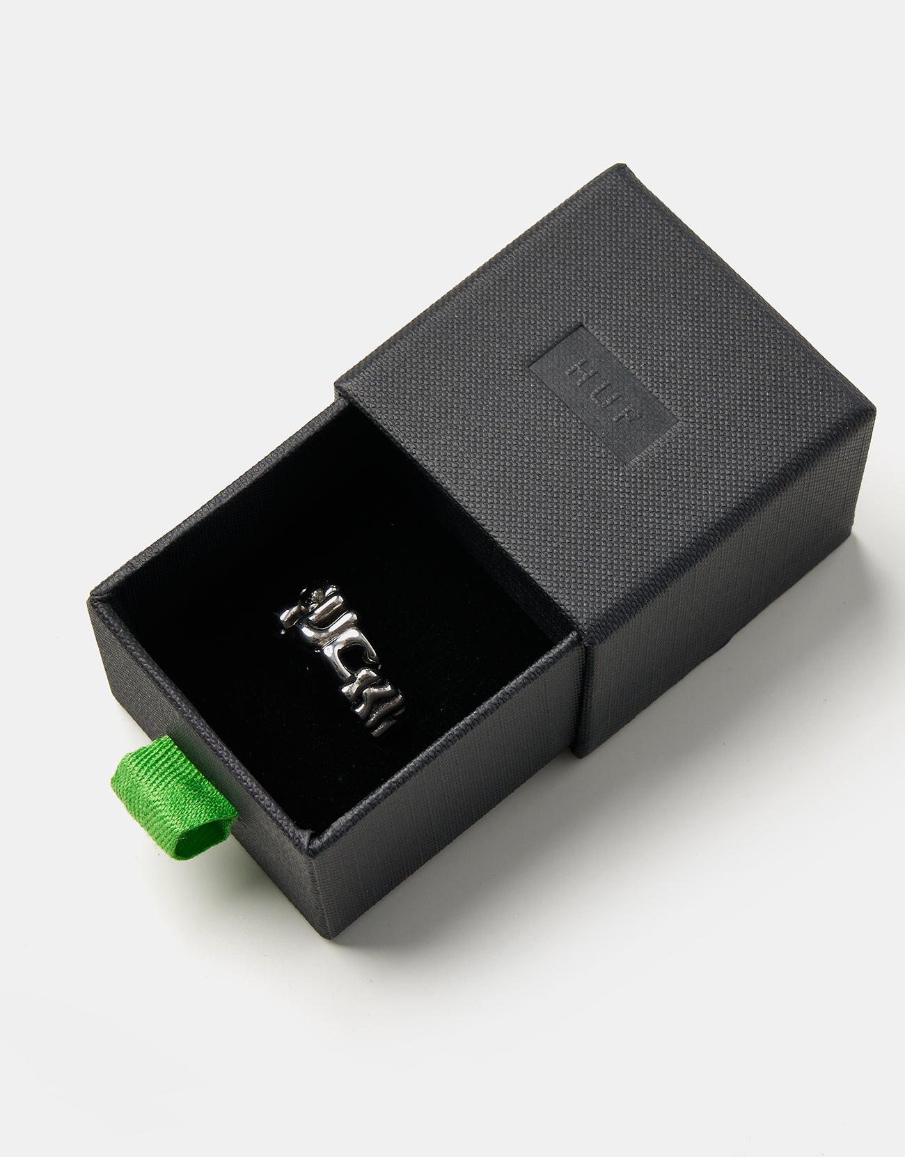The HUF Fuck It Warped Ring in Silver is a bold and edgy accessory that embodies a carefree attitude. Crafted from high-quality metal with a striking warped design, this ring features the iconic "Fuck It" engraving that boldly expresses a rebellious spirit. Its unique shape ensures a comfortable fit while making a statement, perfect for those who embrace individuality and self-expression. Ideal for everyday wear or as an eye-catching piece for special occasions, this ring is a must-have for fashion-forward individuals.