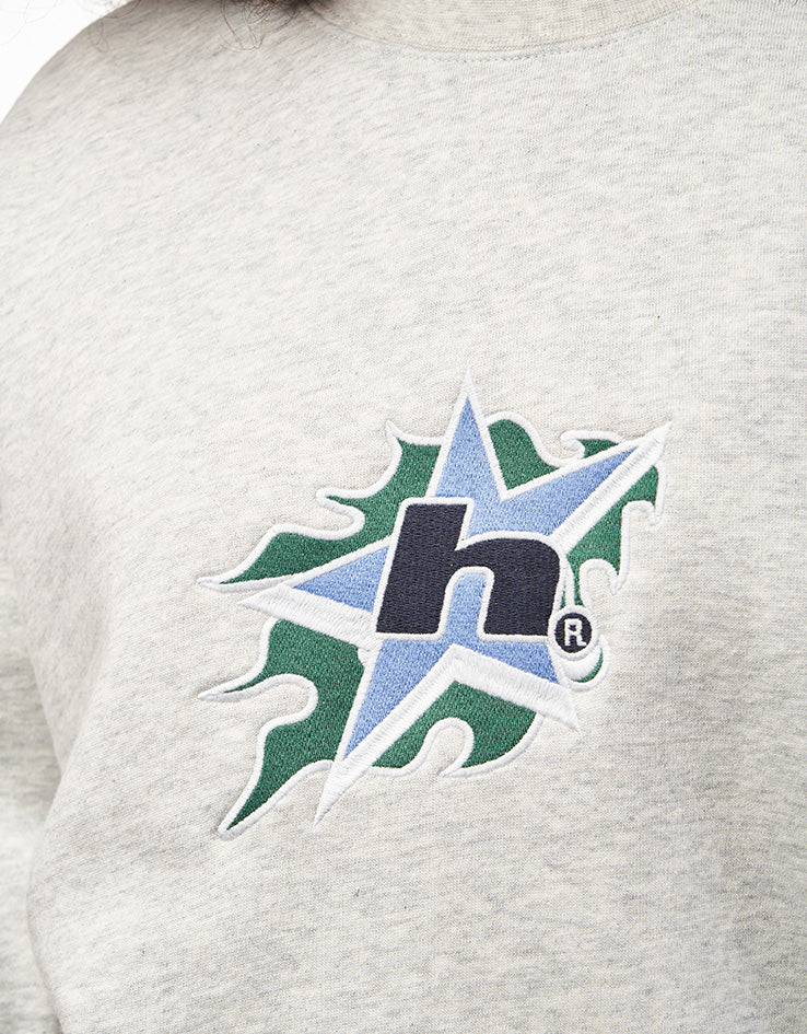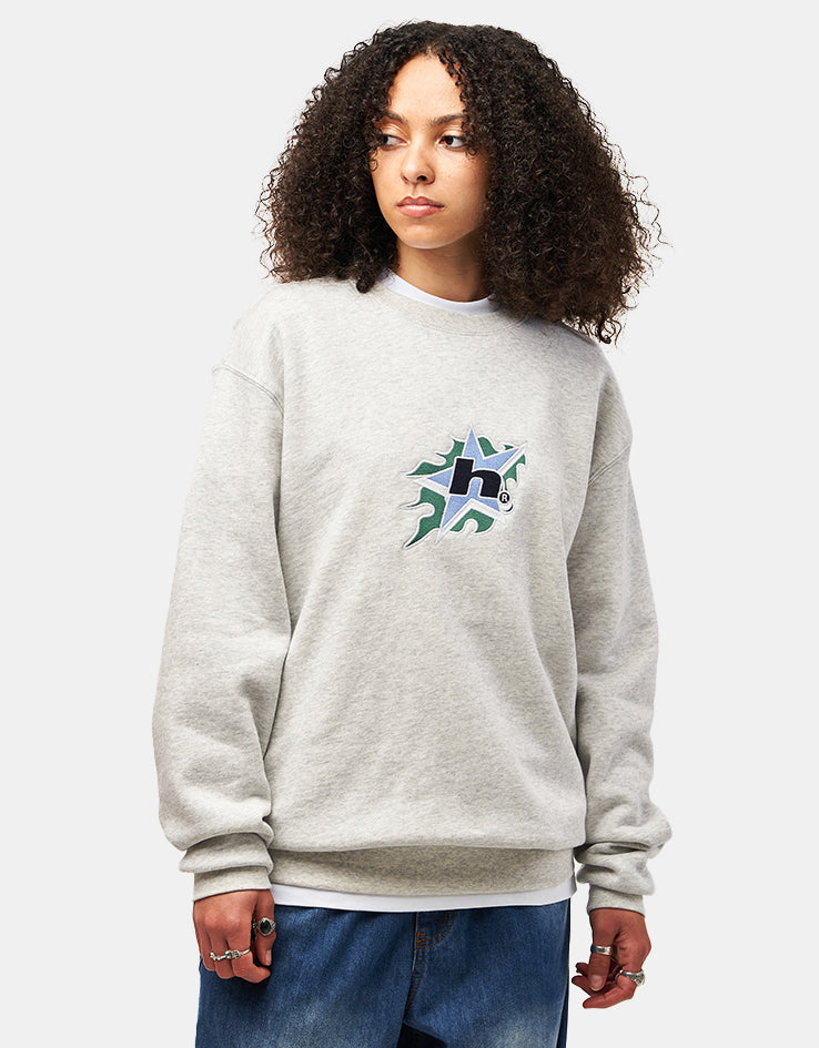 Upgrade your wardrobe with the HUF H Bit Crewneck in Ash, an essential addition to everyday outfits. Composed of a cotton blend, styled in a relaxed fit with embroidered graphics on the front chest.