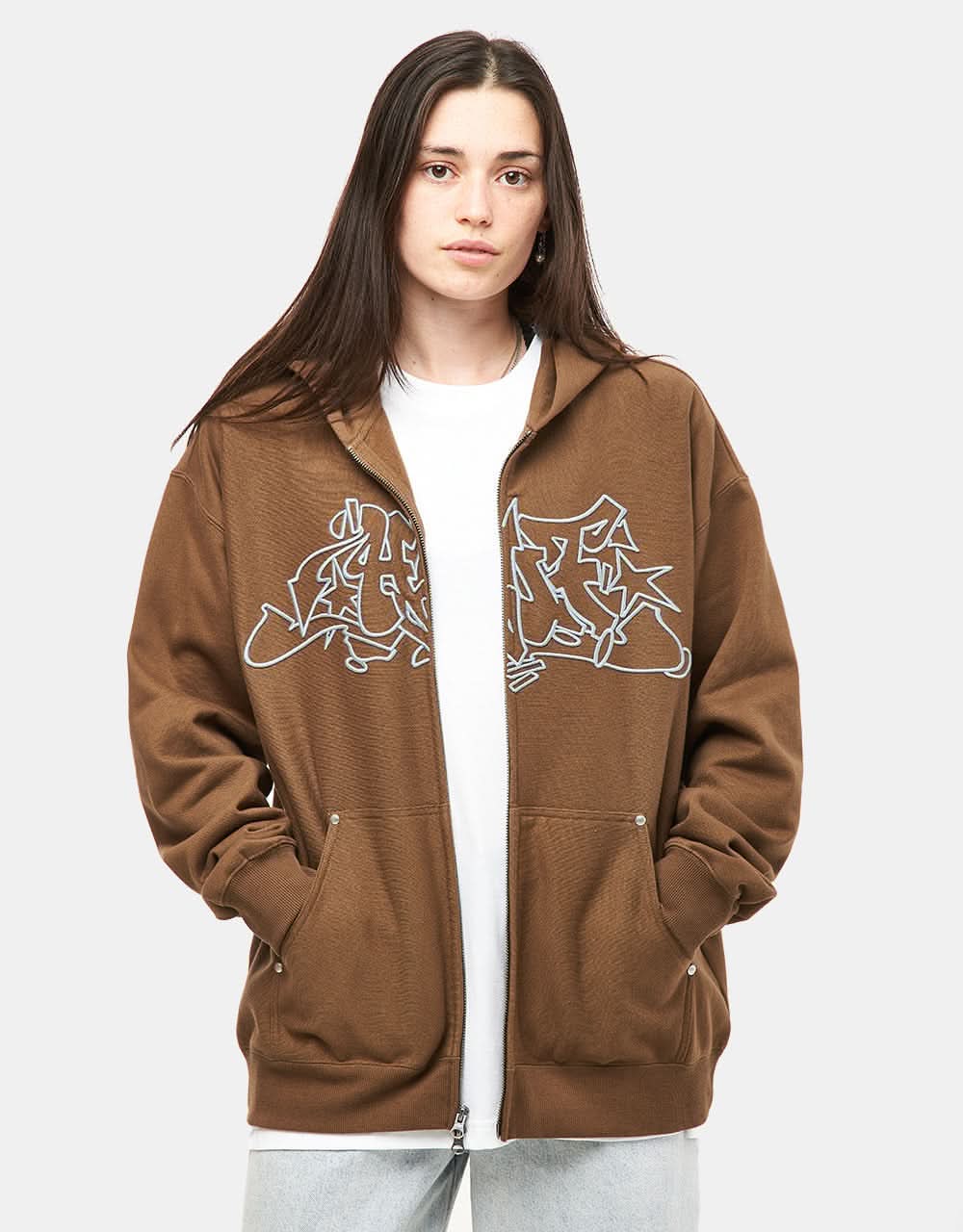 HUF Outlines Heavy Weight Full Zip Fleece Hoodie - Brown