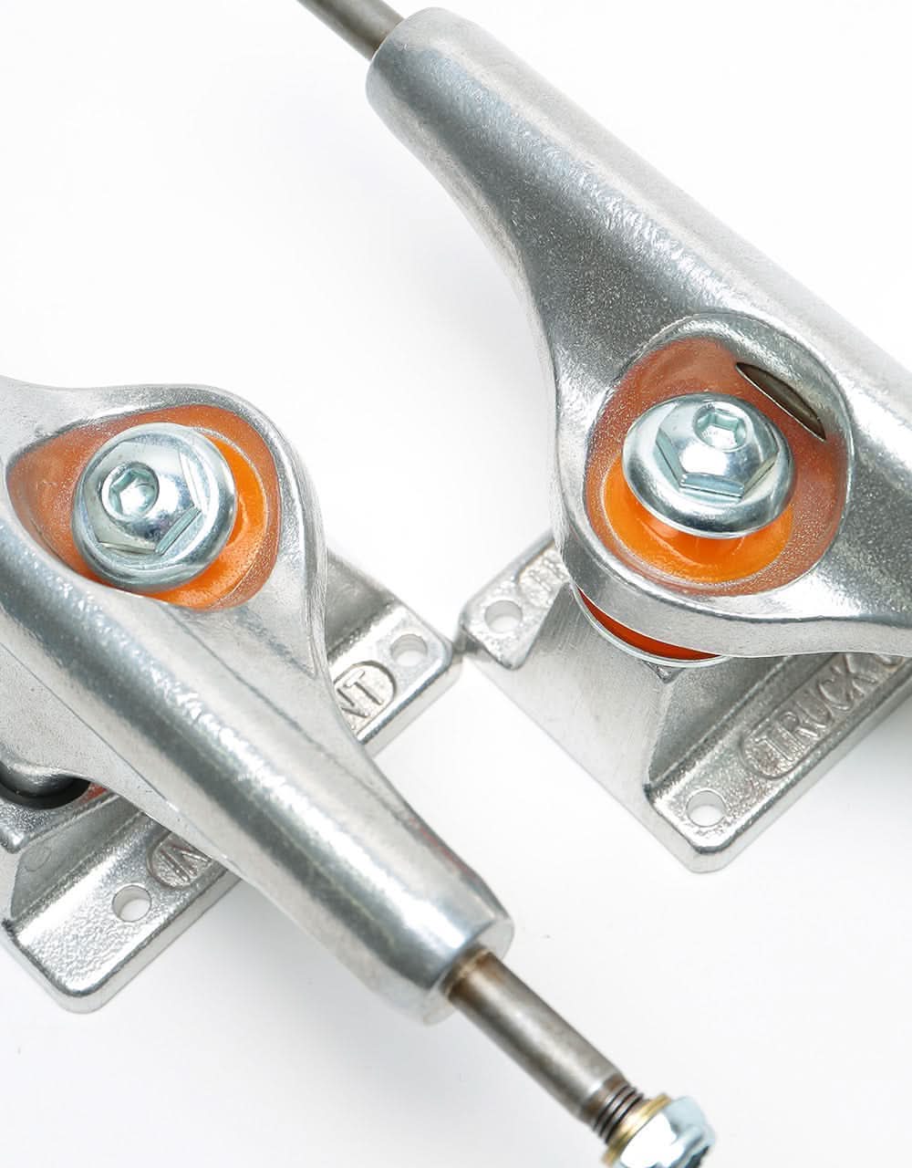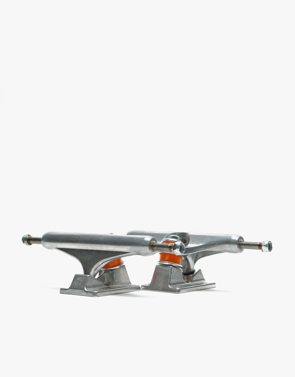 The New Mid trucks from Independent feature an inverted kingpin for less hangup. As well as this these trucks measure at 52mm high which helps provide a quick, responsive skate. It is recommended that you skate a wheel 53mm or less with these trucks to minimise wheelbite. These trucks are sold in pairs so you will only need to order a quantity of 1 per skateboard. These trucks are sold in pairs so you will only need to order a quantity of 1 per skateboard.