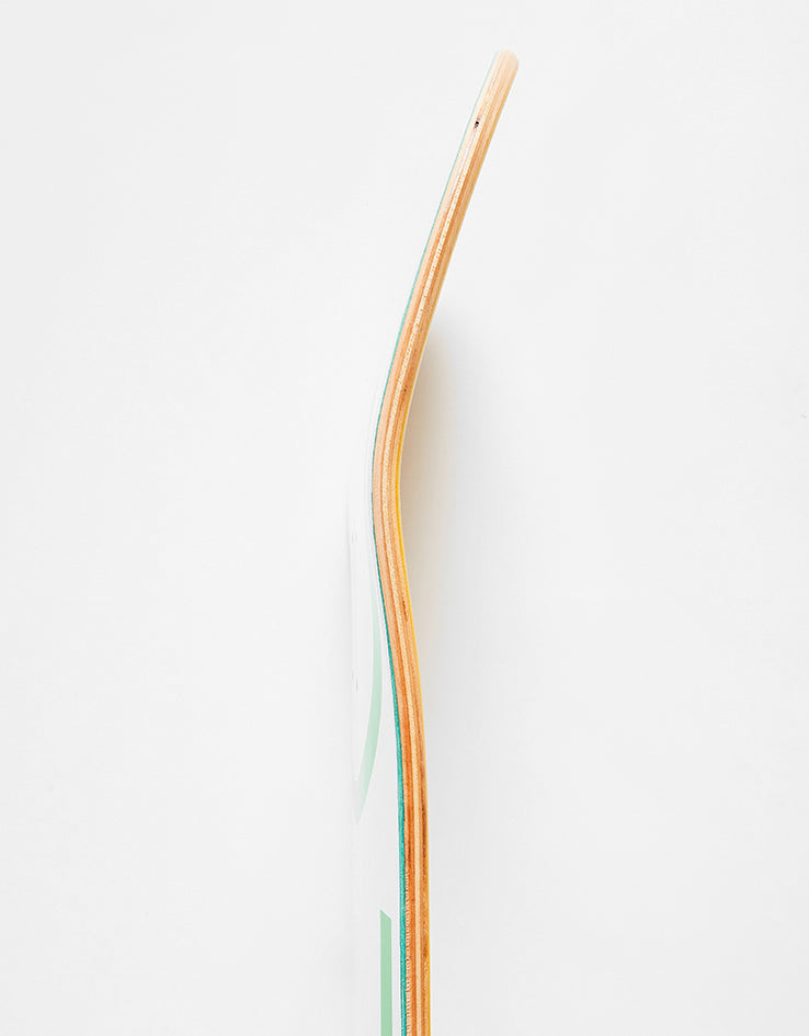 The Logo II Skateboard Deck from Isle sees the brand's classic branding printed down the length of the deck in green on a white background.