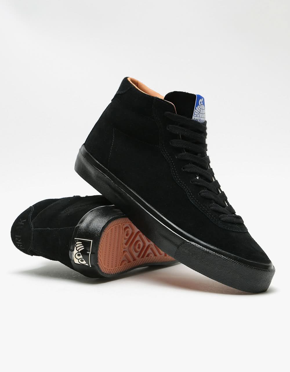 The first silhouette from Last Resort is a simple, clean and functional shoe, aimed at performance and offering you a great skateboarding experience. The Black/Black Suede Hi VM001 shoe features a single piece suede upper with a canvas lining offering maximum comfort. The shoe sits on top of a vulcanised sole providing a great board feel and a consistent flick. Because of the single-piece upper, there are no panels or stitching in any of the high wear areas of the shoe to blow out, this helps the shoe retain its shape. The foxing tape is a much higher wrap than normal with this shoe, this offers a more consistent, longer-lasting flick straight out of the box.