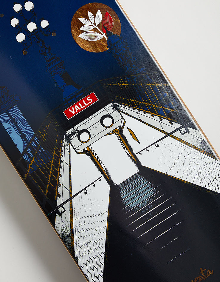 The Magenta Leo Metro Series Skateboard Deck is a pro model board for Leo Valls coming in at 8.5" wide showing an underground station stairway.