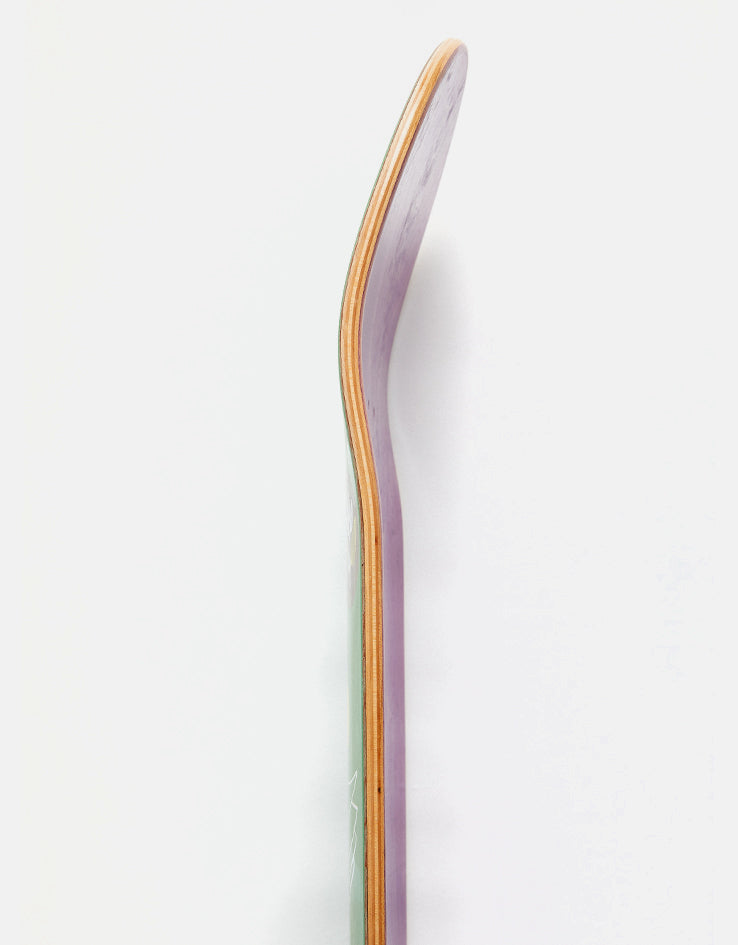 The Magenta Spelta Solstice Skateboard Deck comes in at 8" wide and is a pro model for Ruben Spelta. Featuring art by Maitre Panday, the graphic is a simple illustration of several pieces of literature on a dipped green board. Magenta branding sits in black above the bottom bolts.