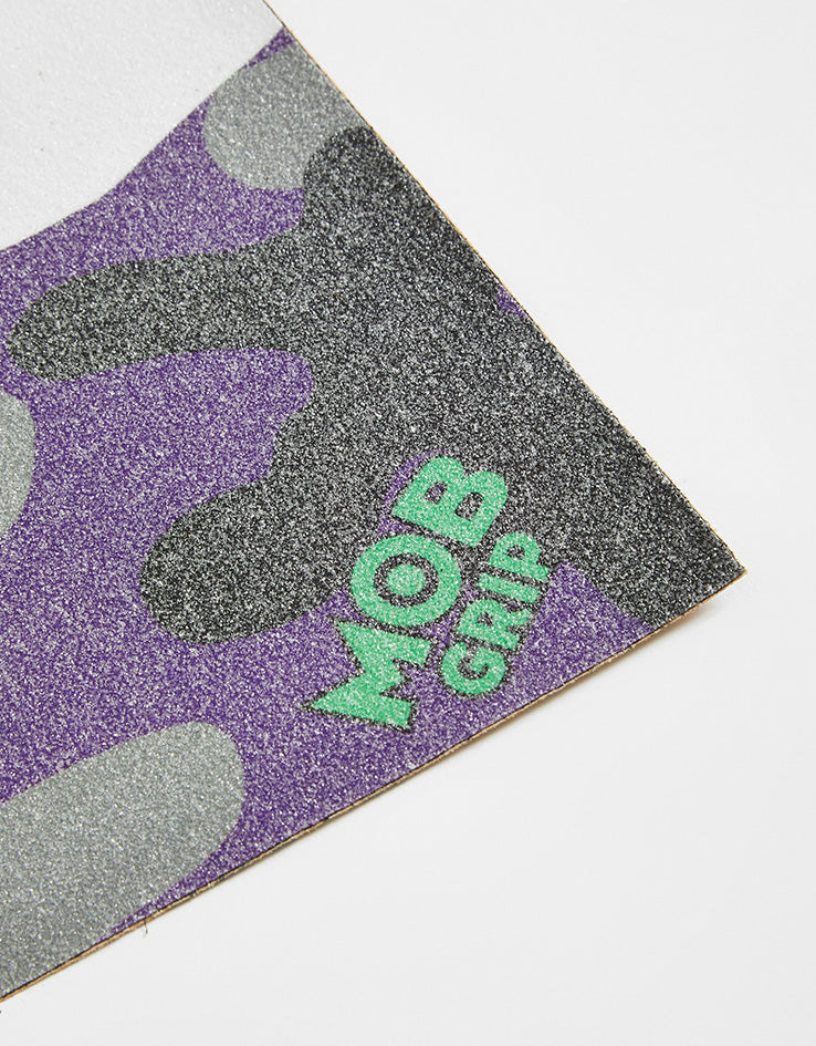 The Camo Grip from Mob is a complete sheet of grip with a purple camouflage pattern print. Time how long it takes for someone at the skatepark to ask where your grip tape is.