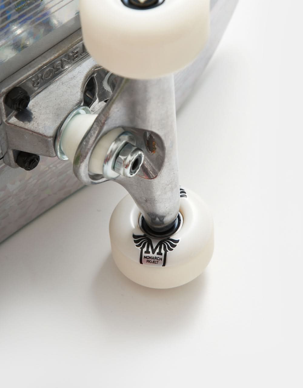 The Monarch Sky Paradigm Mid Premium Complete Skateboard comes fully set up and ready for skating. Coming in at 7.375" wide, the deck features Monarch branding down the length of the board in the centre on a shiny background and comes fully equipped with Tensor raw trucks and natural Monarch Project wheels, making it an ideal board for those just starting out or wanting an upgrade on their current setup.