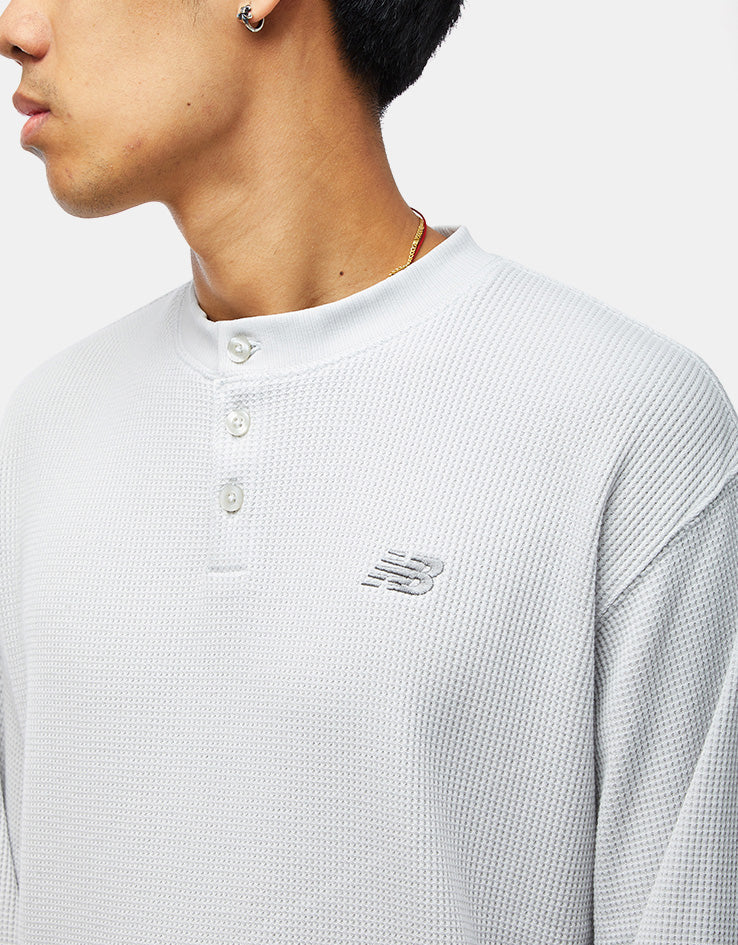 New Balance Numeric Waffle Knit Long Sleeve Henley - Grey