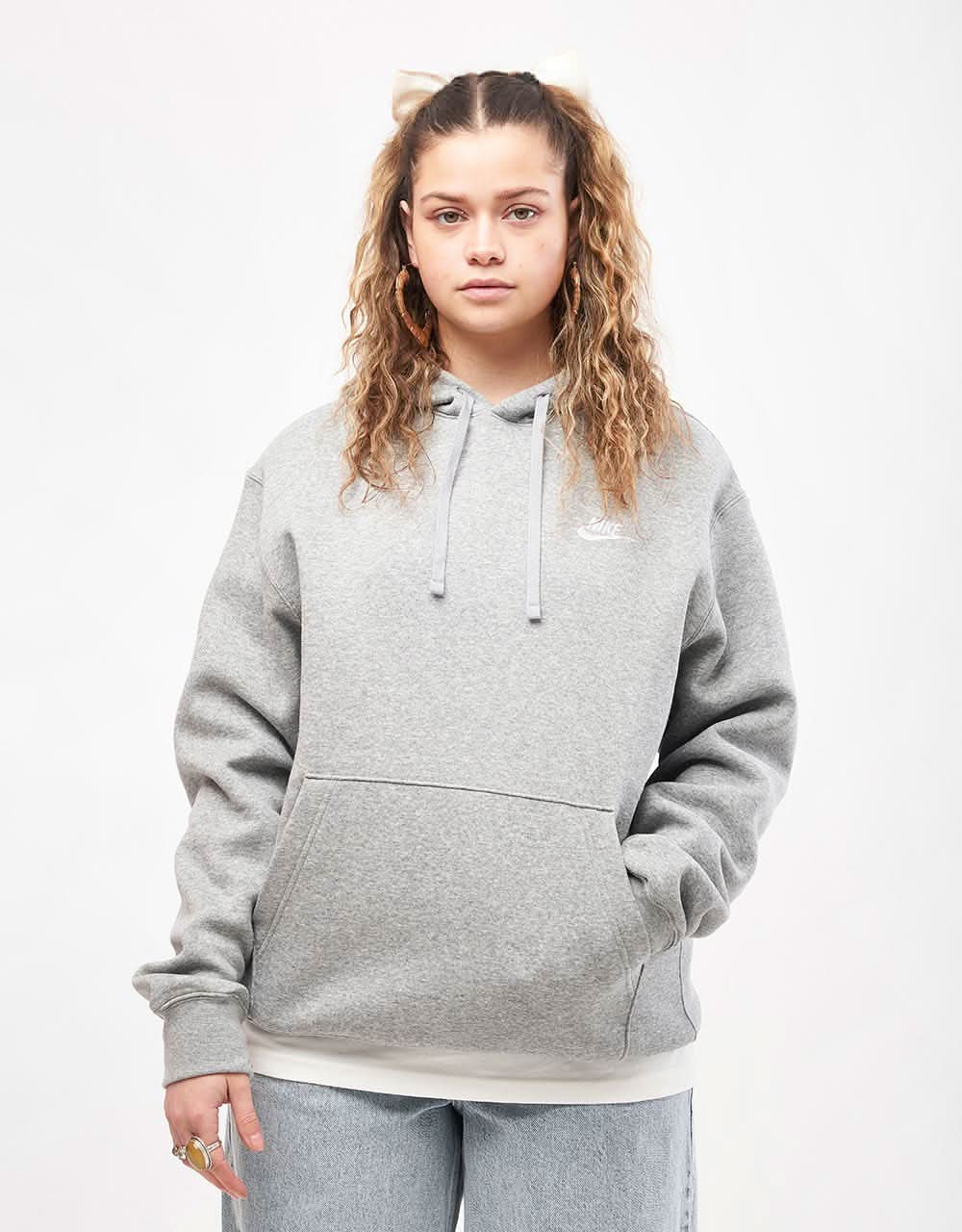 Nike Club Pullover Hoodie - Dark Heather Grey Heather/White