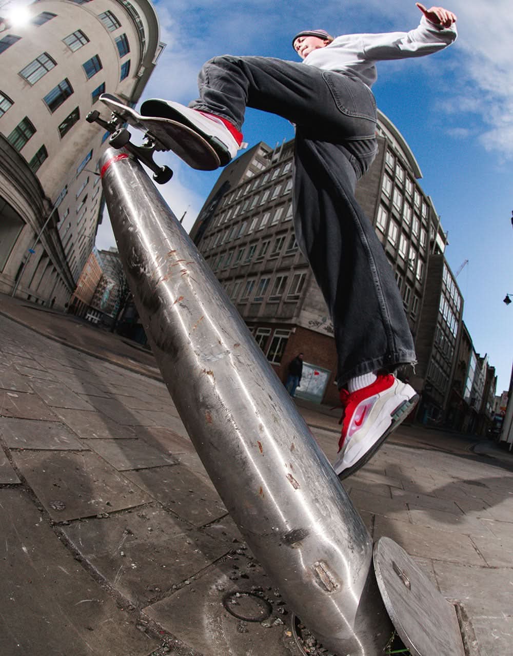 Receiving a pro shoe is a rarity these days, to receive a second is even rarer, but for Ishod the time has come. The Air Max Ishod or "Wair Max" shoe has a heavy basketball inspired silhouette, the higher ankle cut, a cross hatch eye stays lacing system to keep them protected. The sole of this shoe features no mid sole and a much thicker insole, including the same air bag tech as in the modern Air Max shoes from Nike. Sat on top of this is a technical mixture of leather and suede layers. Internal mesh makes for a snug, secure fit around your foot and pushes your foot backward in to the shoe to help avoid that dreaded heel slip whilst skating. High fixing tape and technical cup sole keep the shoe durable and able to withstand the abuse skateboarding gives. A technical herringbone tread can be found on the bottom of the shoe, keeping you gripping and not slipping when skating, the ideal situation. All of these thoughtful technical aspects is finished off with this White/Varsity Red-Summit White-Varsity Red-Black colourway.