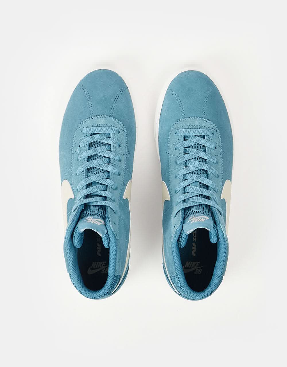The Nike SB Bruin High Skate Shoes in Noise Aqua/Lt Orewood Brn-Noise Aqua are a lightweight, flexible skate shoe that are built to last. The original Bruin has been updated for a high-top look and narrower feel, and as the first Nike SB shoe designed specifically for a snug fit, it delivers more comfort and better board control for narrower feet. The vulcanised sole gives flexibility and durability to this already proven skate shoe silhouette.