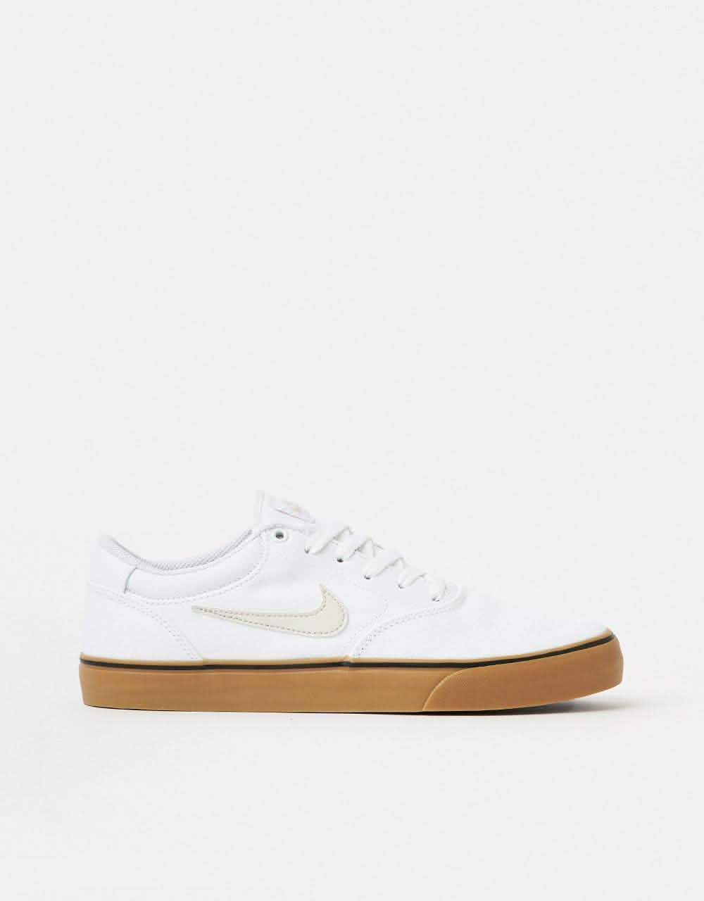 Nike SB Chron 2 Canvas Skate Shoes - White/Light Bone-White-Gum Light Brown