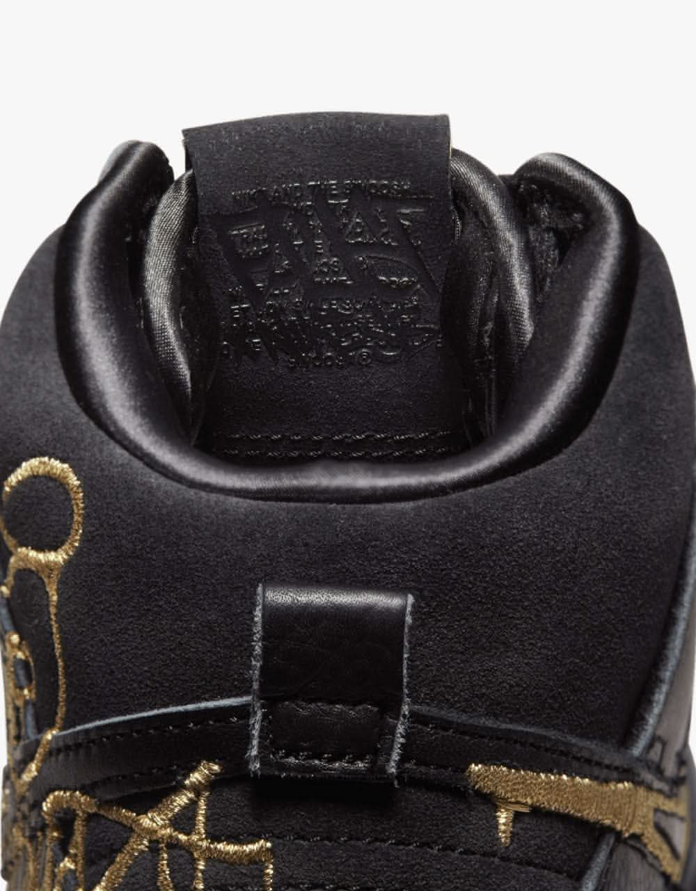 The Nike SB x FAUST Dunk High has a poised black silhouette embellished with regal gold detailing that embodies the street art heritage of the City of Dreams, a sneaker with a story that, like FAUST, you can take ALL CITY.