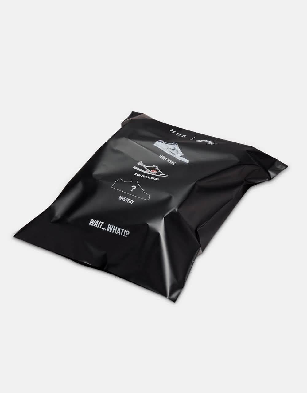 The HUF x Nike SB Dunk Low arrives in both a Black/Vast Grey/White and White/Vast Grey/Midnight Navy colourway, within a randomised ‘blind bag’ that adds to the excitement. Alongside these two stock colourways is a third,ultra-rare, grey and green model – the Wait... What!? HUF Dunk Low, which takes influence from the Friends and Family HUF Air Max 1.