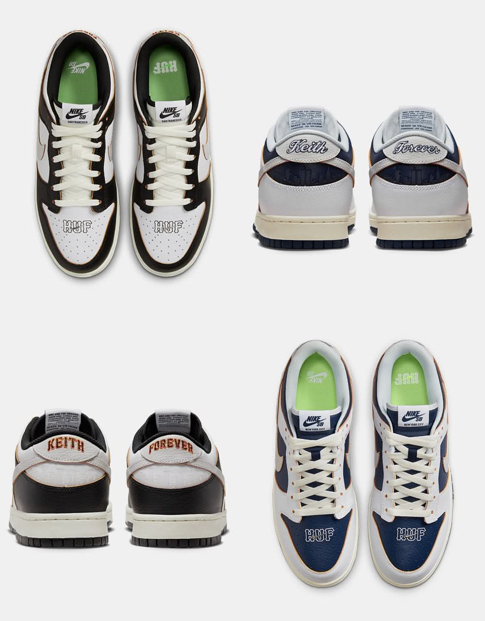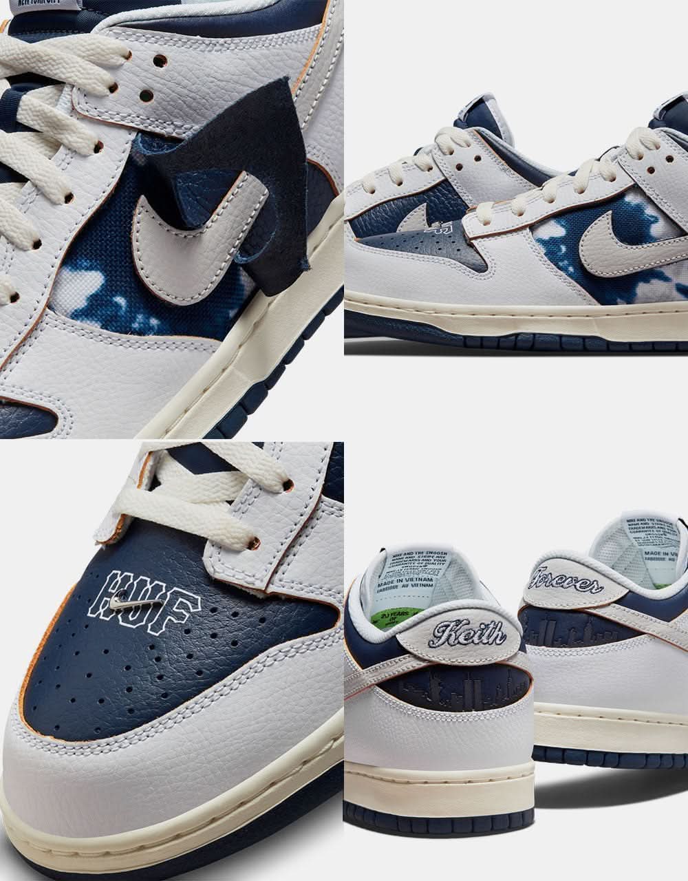 The two different colourways of the HUF x Nike SB Dunk Low are reflective of the two cities that defined Keith – New York City, his birthplace; and San Francisco, where he attended university for a semester before dropping out to pursue professional skateboarding. The NYC version of the shoe takes from the blue and white of the New York Yankees, whilst the SFC alternative borrows the orange, white, and black colour scheme of the San Francisco Giants. At surface level each shoe has a tastefully refined look, with two-tone leather panelling providing a classic aesthetic and resilient durability, evocative of Keith’s raw power and natural style on the board. Dig a little deeper and the tough leather sidewalls give way to vibrant tie-dye canvas sections reminiscent of the aforementioned 2004 HUF Dunk, inspired by SF’s colourful culture - the perfect way to personalise your Dunks, with the same creative spirit that encouraged the opening of the first HUF store in San Francisco’s Tenderloin neighbourhood in 2002.