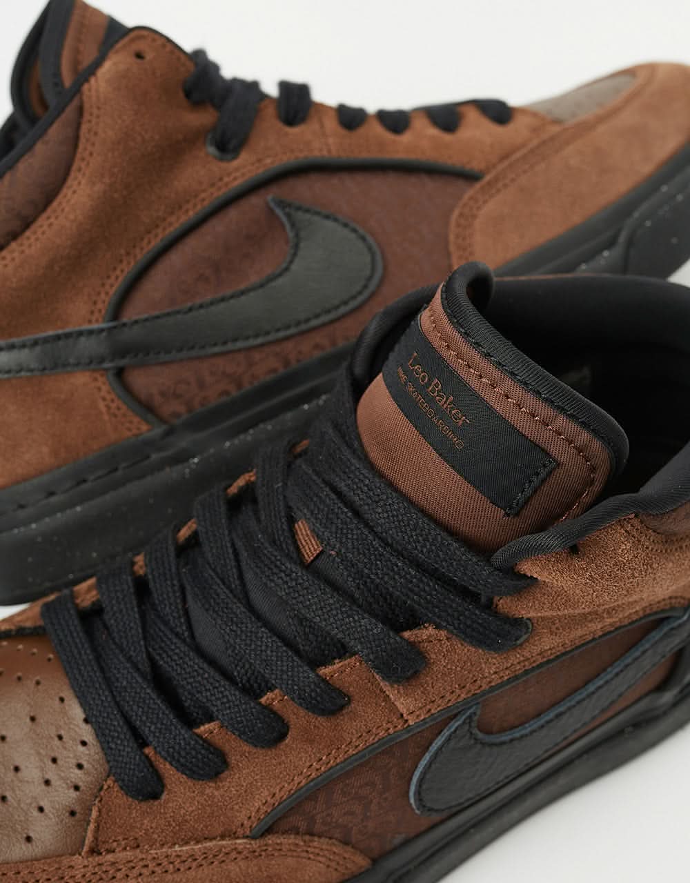 The Leo Baker shoe for Nike SB is a mash up of premium, luxury materials and feel with a tough, supportive skate shoe, ready to hit the streets. The Leo is a genderless shoe, designed to be ready to go straight out the box with a broken in feel instantly. This mixed with a padded mid top design makes for an all around hard hitting shoe that is ready to rock and roll when you are.
