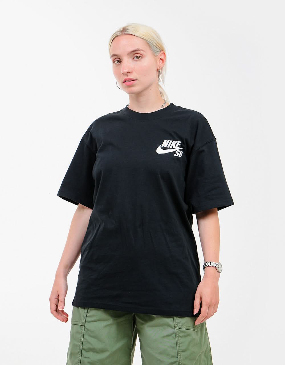 The Nike SB Logo T-Shirt in Black/White is crafted from 100% soft cotton, and features a ribbed crew neck cut, short sleeves, screen printed graphic on the chest of the classic Nike SB Logo, and is tailored to a relaxed fit for ultimate comfort. This casual, everyday wear T-Shirt is a great addition to any skate or street wardrobe.