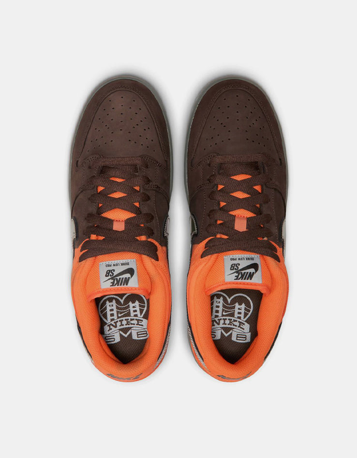Nike SB 'Muni Pass' Dunk Low Pro Skate Shoes - Safety Orange/Wolf Grey-Baroque Brown