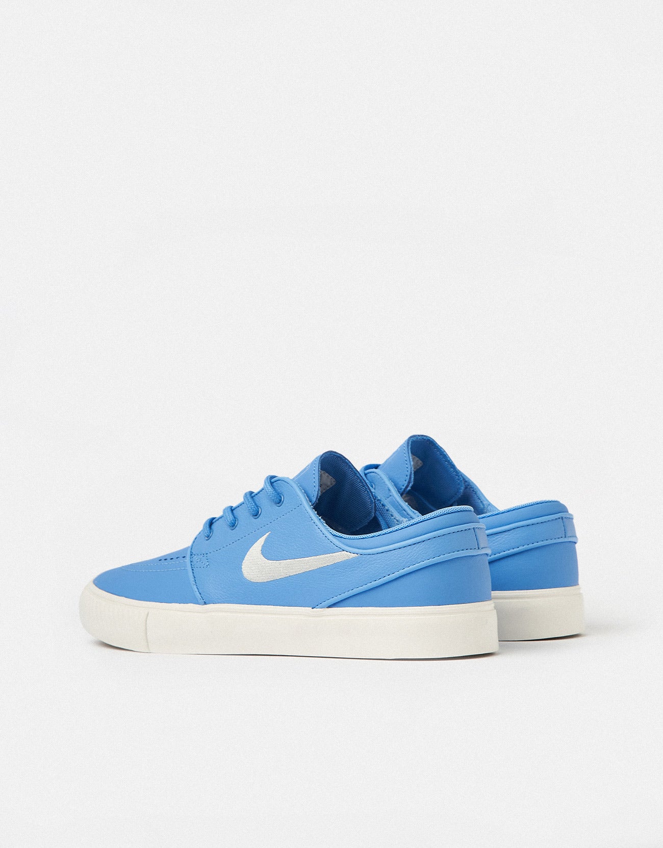 The Nike SB 'Orange Label' Zoom Janoski OG+ ISO Skate Shoes in  University Blue/Sail-University Blue features all of the upgrades to Stefan's signature skateboarding line after a year of redesigning. The skate-specific tread delivers elite board feel and flick, whilst reworked to give you a better fit and comfort. The premium leather upper is durable, the vulcanised construction fuses the upper and the sole for a flexible and broken-in feel and Zoom Air cushioning helps provide a quick-off-the-ground feel. To round off this bright shoe, orange detailing on the insole, tongue, and lace tips to add an extra pop of colour and pay homage to Nike's heritage.