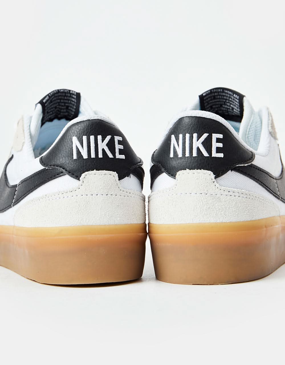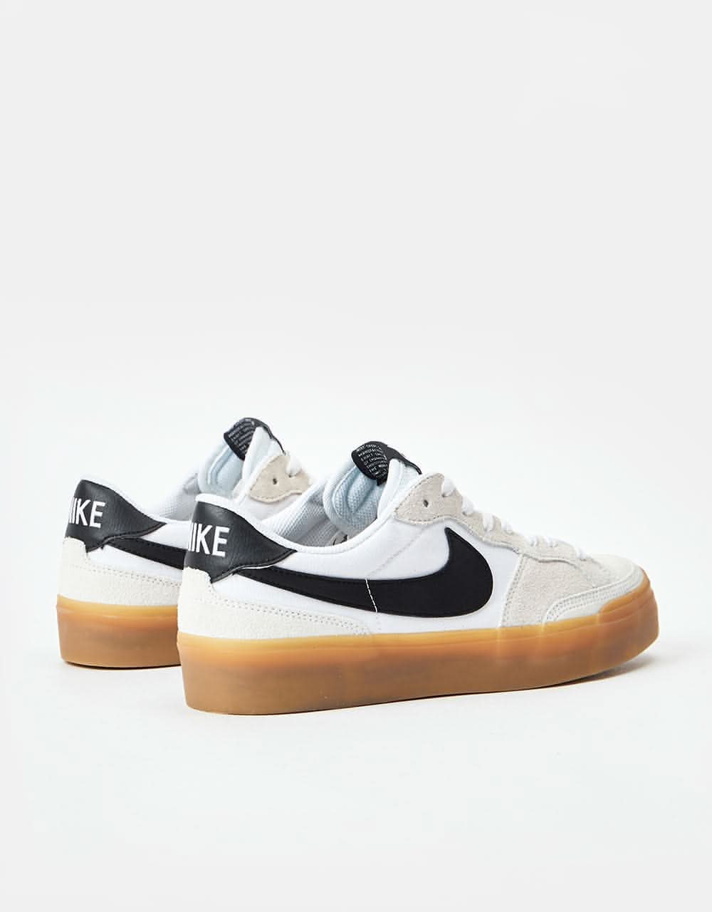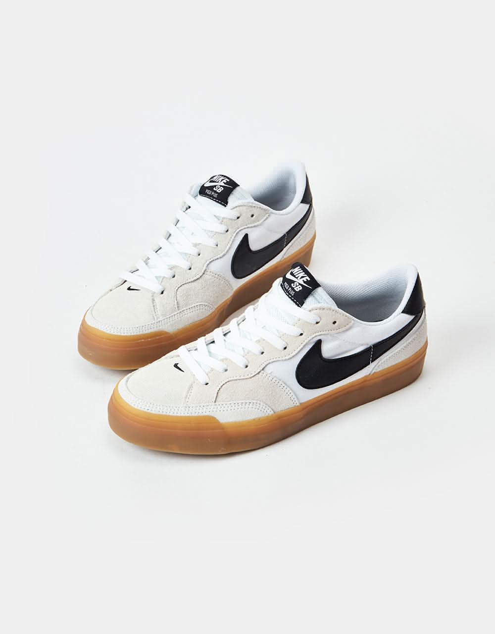 The Nike Pogo Skate Shoes in White/Black-White-Gum Light Brown feature premium canvas and leather uppers, that sit underneath tough suede overlays. Raised taping and the reinforced toe bumpers keep you skating for longer. With similar aesthetics to the Grant Taylor Blazer Low Pro and the Chron 2, these skate shoes bring classic Nike SB styling and combine it with skate-readiness and durability.