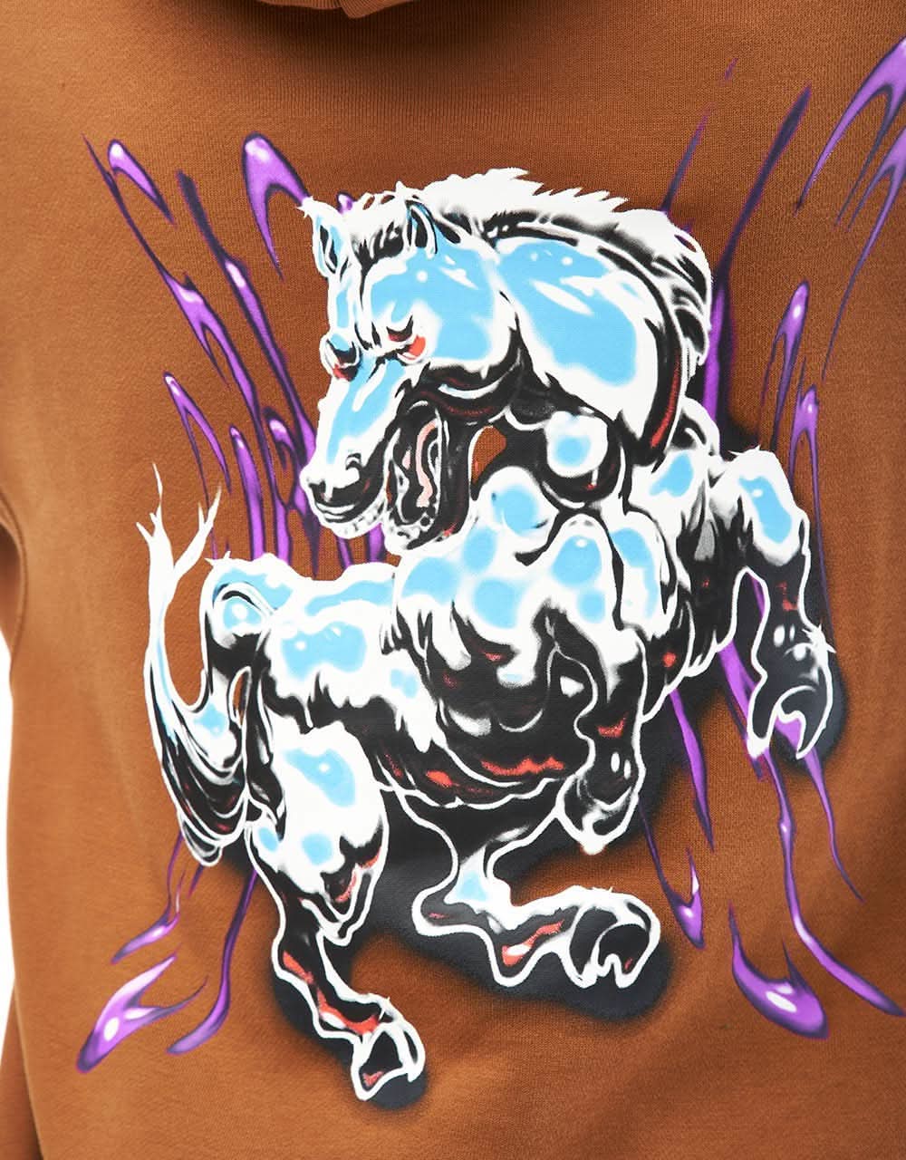 Get buck wild in the Stallion Pullover Hoodie from Nike SB. This classic pullover sweatshirt style is cut to a relaxed fit from a soft and warm polycotton construction, and features screen printed artwork at the chest and rear for an intense aesthetic. It features a drawcord hood, kangaroo pocket, and is finished with stretchy and comfortable rib knitting at the cuffs and hem to cinch its loose fit.