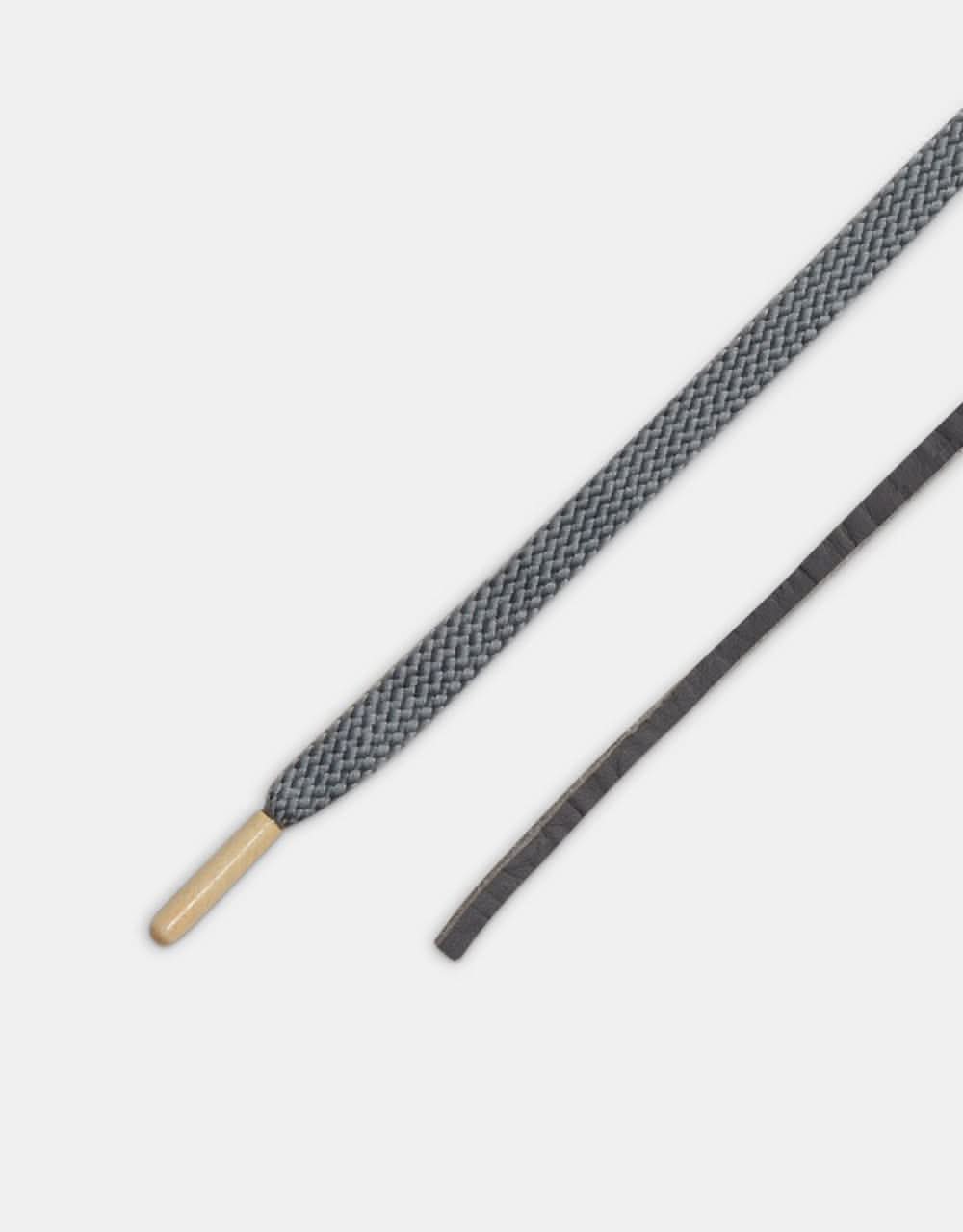 Di’Orr’s Blazer adopts a more neutral approach than that of its cupsole counterpart, reworking the Blazer’s iconic vulcanised silhouette with a shadowy, two-tone nubuck upper. Focussing first on the foxing, regularly spaced, embossed pyramids work their way around the foot, combining the classic, crackled Blazer tape with the smooth finish of Nike SB’s GT models. Rising through the upper, the defining feature of the shoe is its bold fabric application across the laces, providing a cover inspired by traditional Navajo clothing. Heavy set, embroidered detailing breaks up the greyness, and a floral toe box emblem completes the embellishment.
