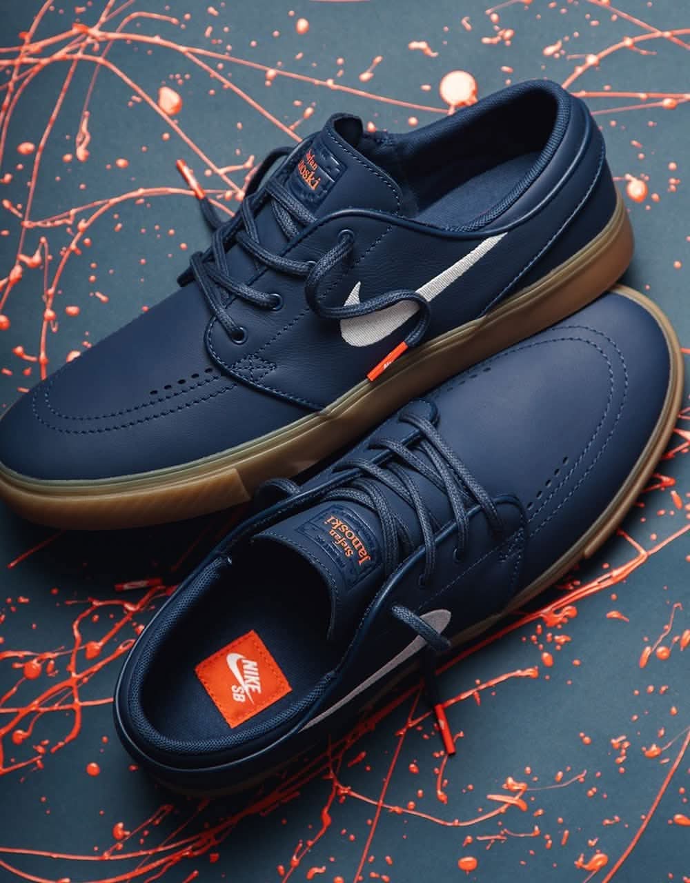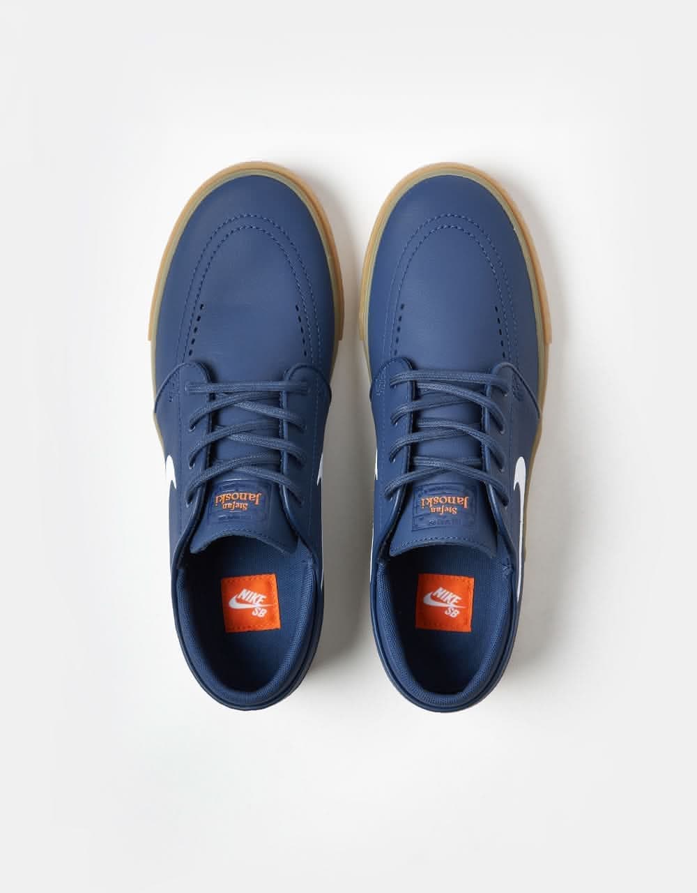 Nike SB Zoom Janoski ISO Skate Shoes - Navy/White-Navy-Gum Lt Brown-Midnight Navy-Safety Orange