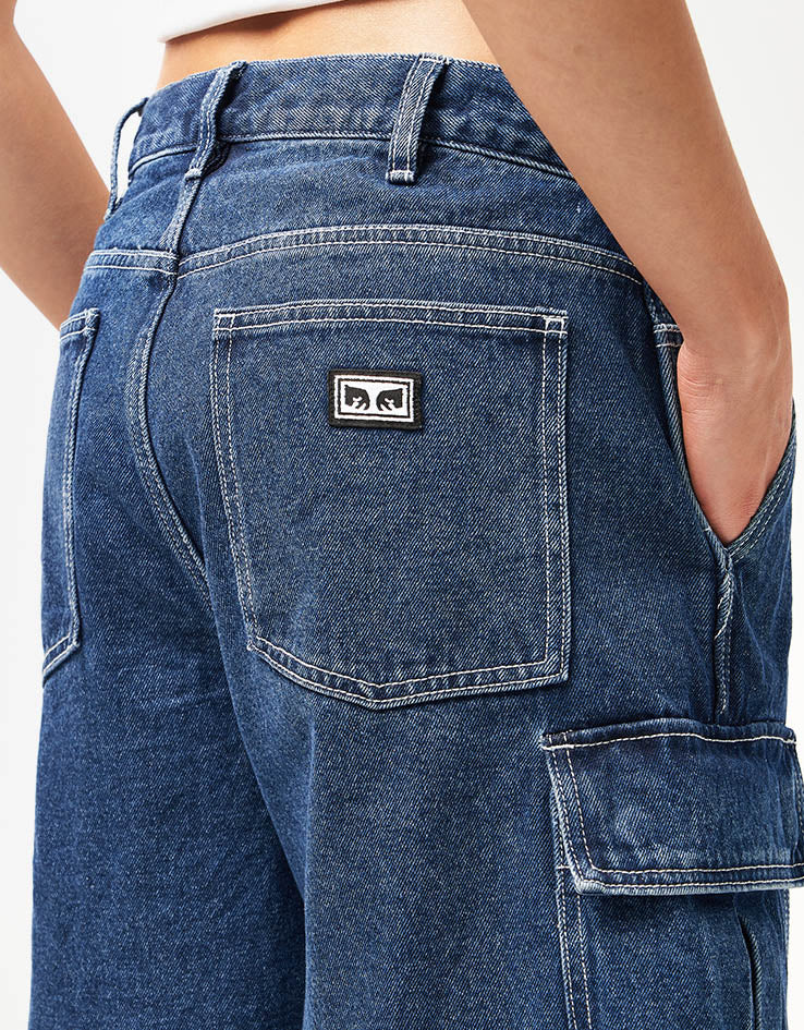 Upgrade your wardrobe with the Obey Bigwig Baggy Denim Cargo Short in Stone Wash Indigo, featuring classic branding from this iconic brand. Composed of 100% cotton, styled in a baggy fit with embroidered branded details.