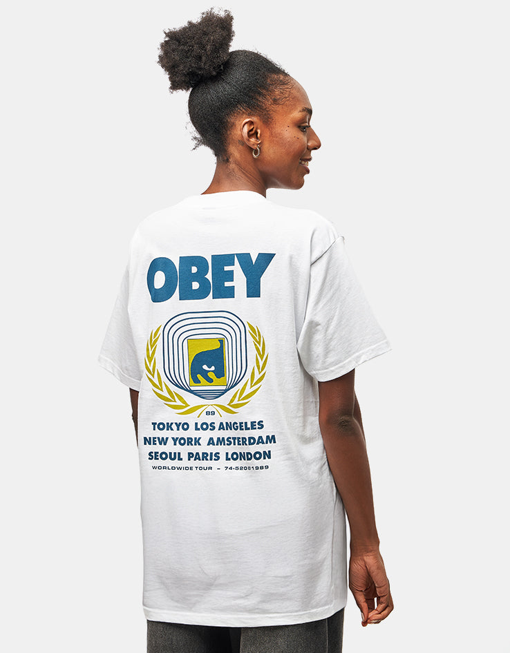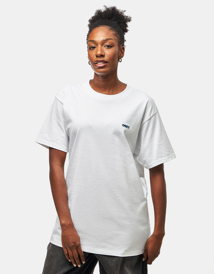 Upgrade your wardrobe with the Obey Icon Eye Wreath T-Shirt in White, an essential skate addition to any outfit. Composed of 100% cotton, styled in a relaxed fit with screen printed graphics on the front chest and back.