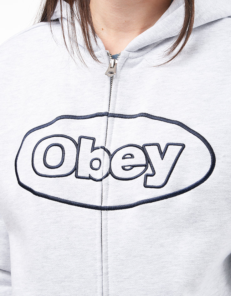 Obey Oval Extra Heavy Zip Hoodie - Ash Grey
