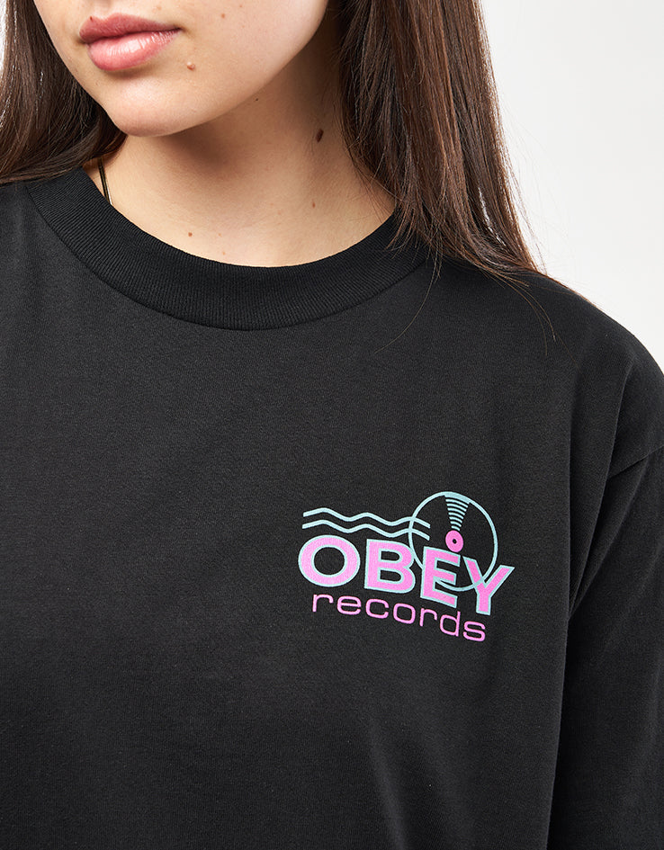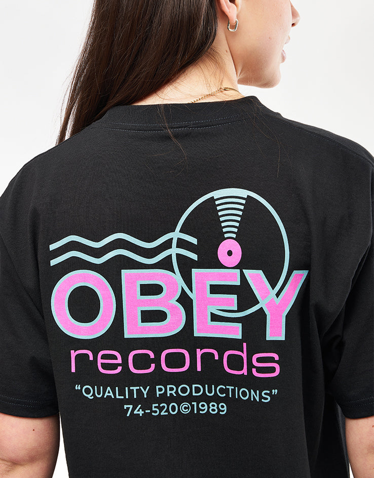 Upgrade your wardrobe with pieces from one of the most iconic street and skate brands, the Obey Records Sound Waves T-Shirt in Black. Composed of 100% cotton, styled in a relaxed fit with screen printed graphics on the front chest and back.