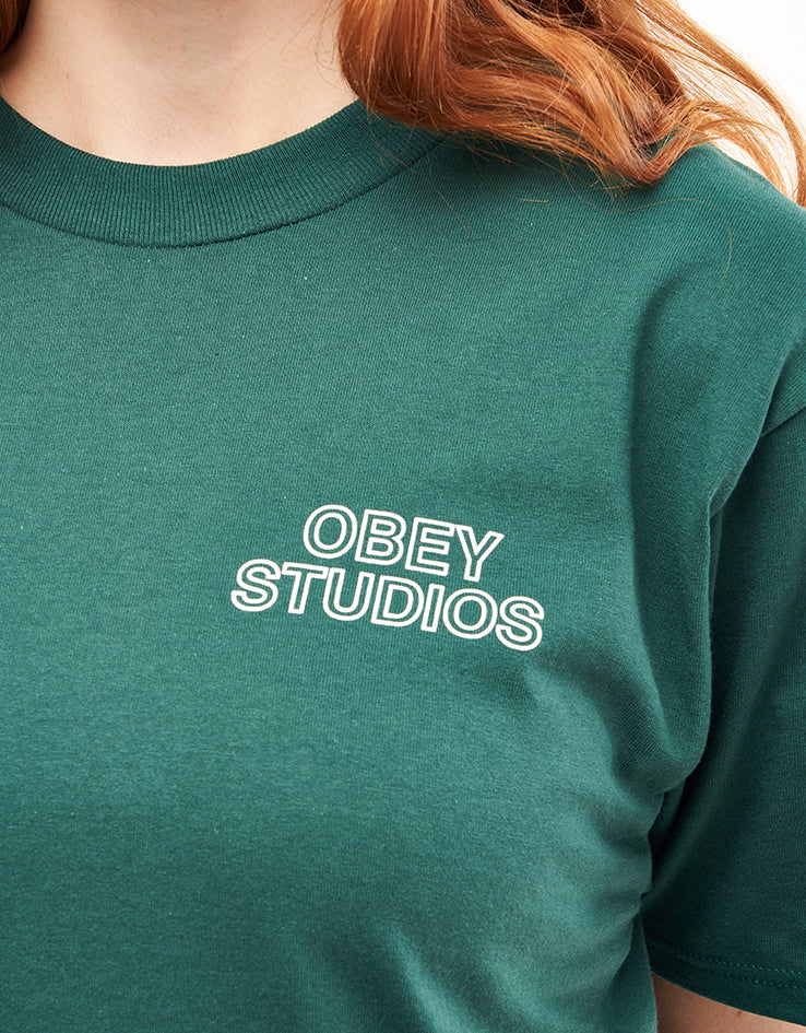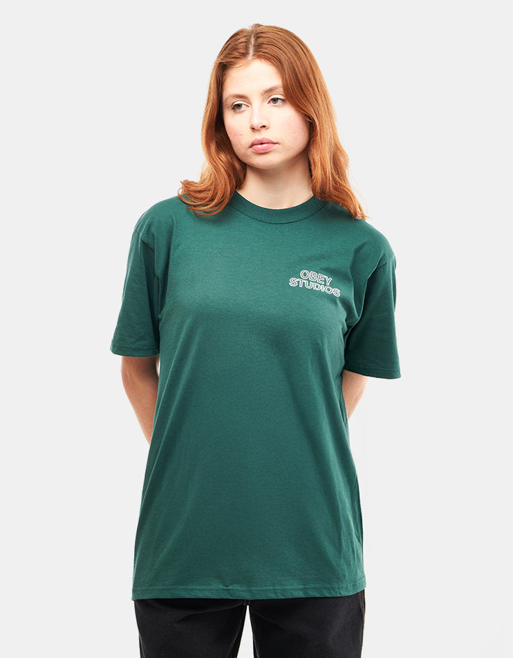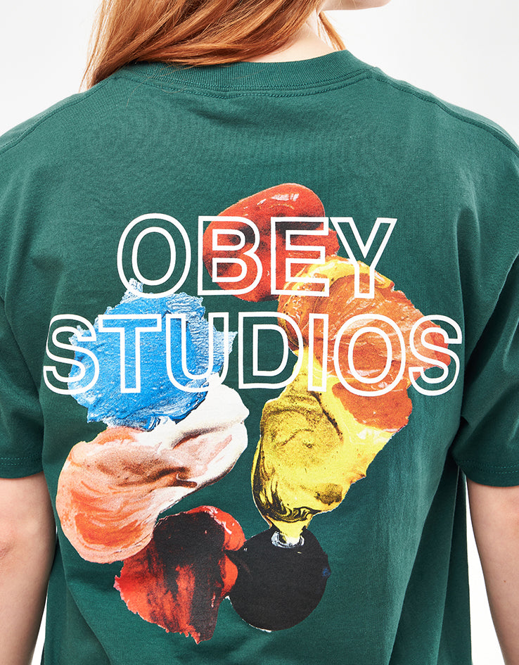 Upgrade your wardrobe with pieces from one of the most iconic street and skate brands, the Obey Studios Palette T-Shirt in Rain Forest. Composed of 100% cotton, styled in a relaxed fit with screen printed graphics on the front chest and back.