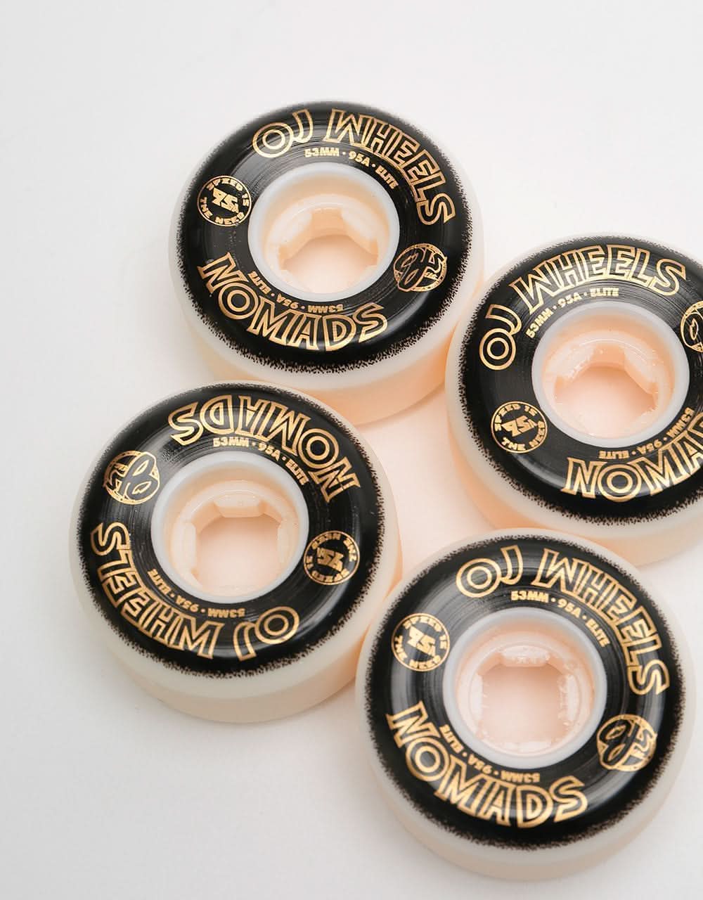 The New Nomads wheel from OJ features their new Wheel shape! this shape features a much flatter side cut shape similar to the HardLine shape but the overall wheel is much thinner. this helps with locking in and less resistance against a ledge or coping to allow you to grind for longer! these wheels are also 95A which means these are going to be a tad softer than your normal street wheel but will still allow you to slide at will.
