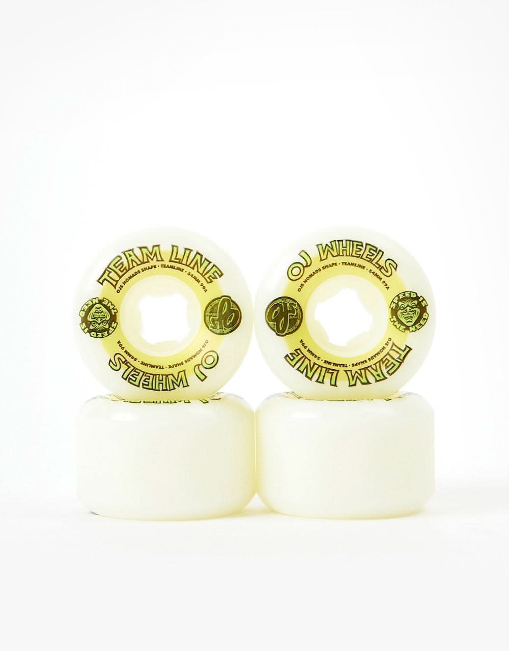 The Team Line wheels are team wheels for OJ made from the OG urethane. These are the Hardline shape and feature a conical cut with a wider riding surface to help keep you locked into grinds as well as stable at higher speeds.